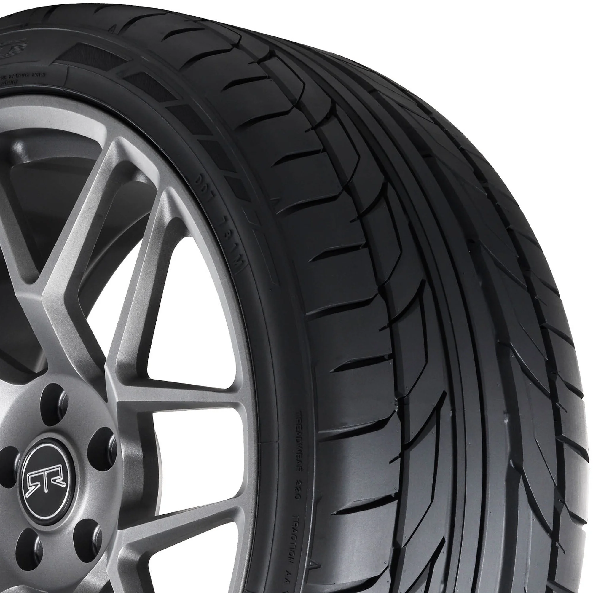 The Nitto NT555 G2 is an ultra-high performance summer tire designed for drivers of modern high-performance vehicles, engineered for increased traction, handling, and wet-braking capabilities. Its cornering performance is enhanced by large, tapered tread blocks that increase stability and grip. For straight-line stability and improved dry traction, the design features twin center ribs. The tire's high stiffness and silica compound, along with reinforced shoulder treadblocks, further improve handling in both wet and dry conditions, while a large circumferential groove aids in hydroplaning resistance.