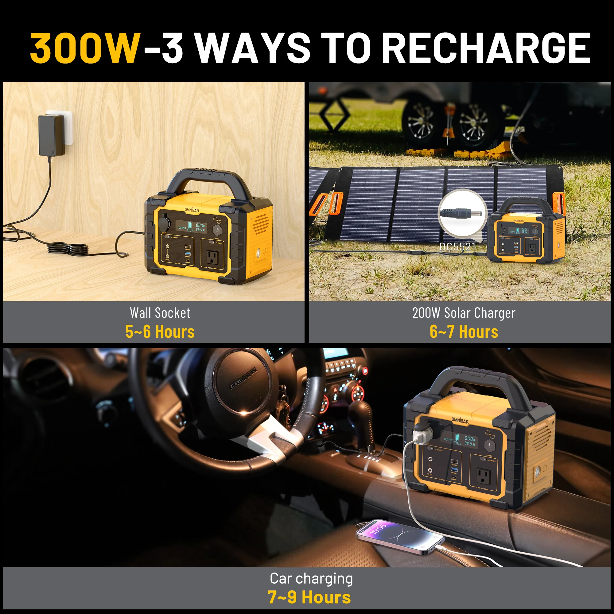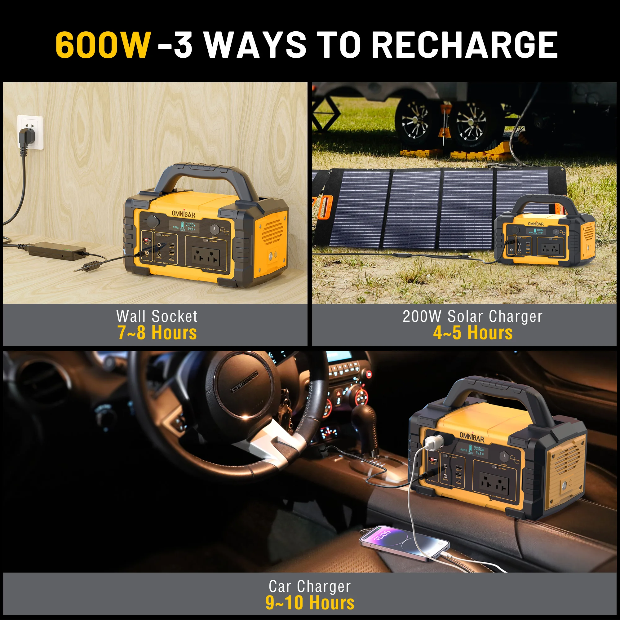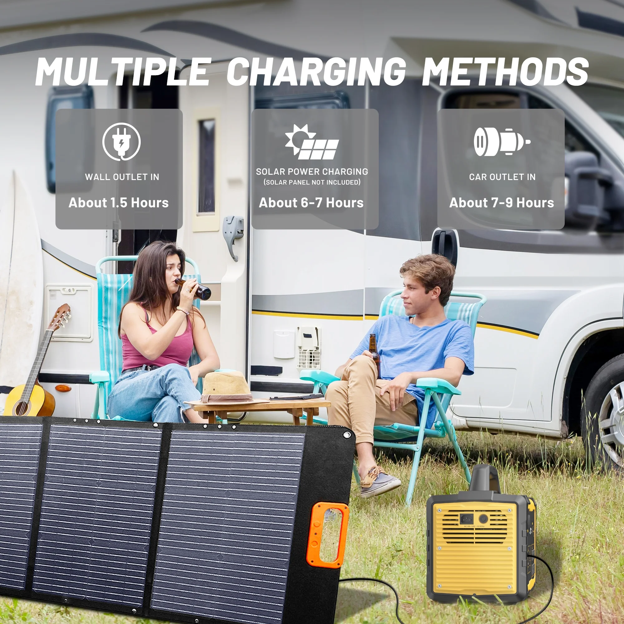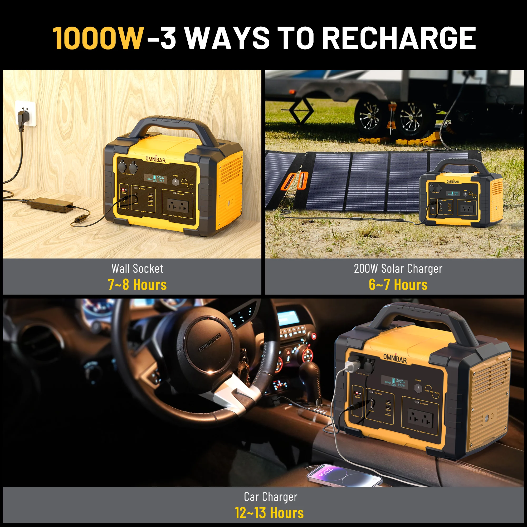 - Fast Charge:The 1000w power station can be charged with AC wall socket in 7-8 hours. with MPPT function, recharge with a 200w solar panel in 6-7 hours.Recharge in 12-13 hours using Car charging.