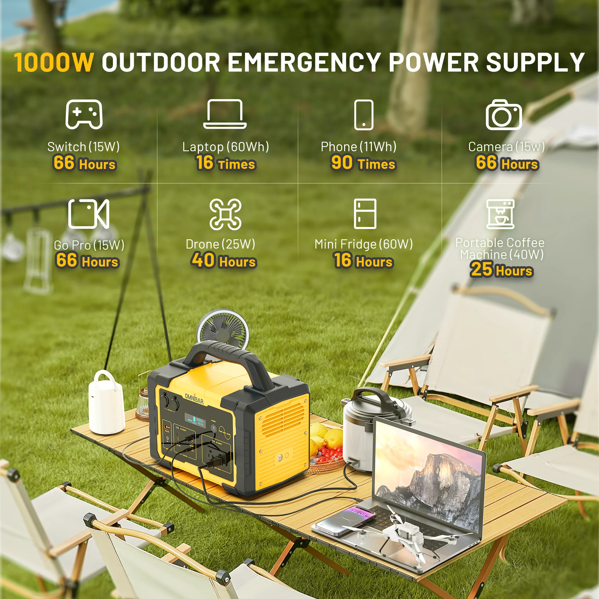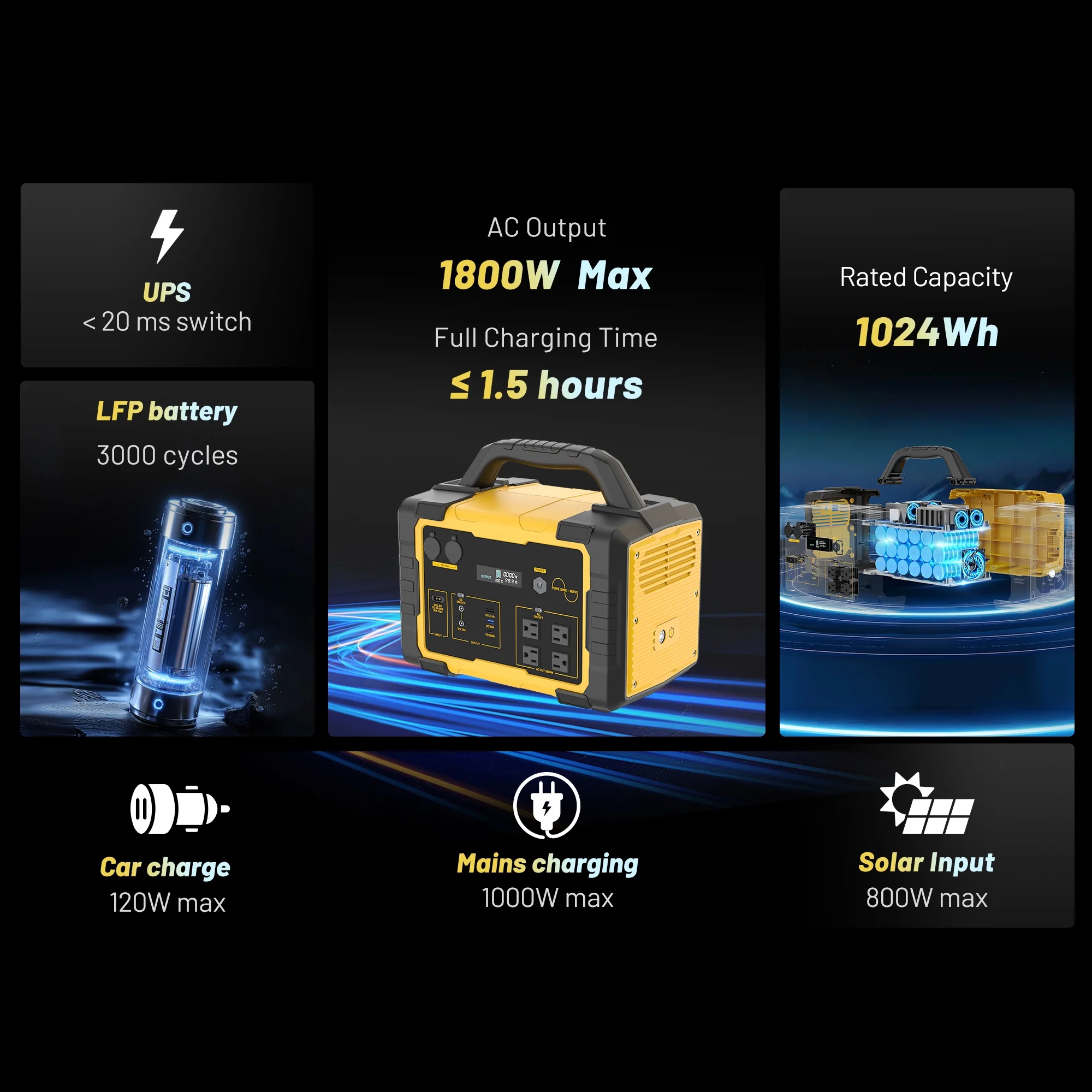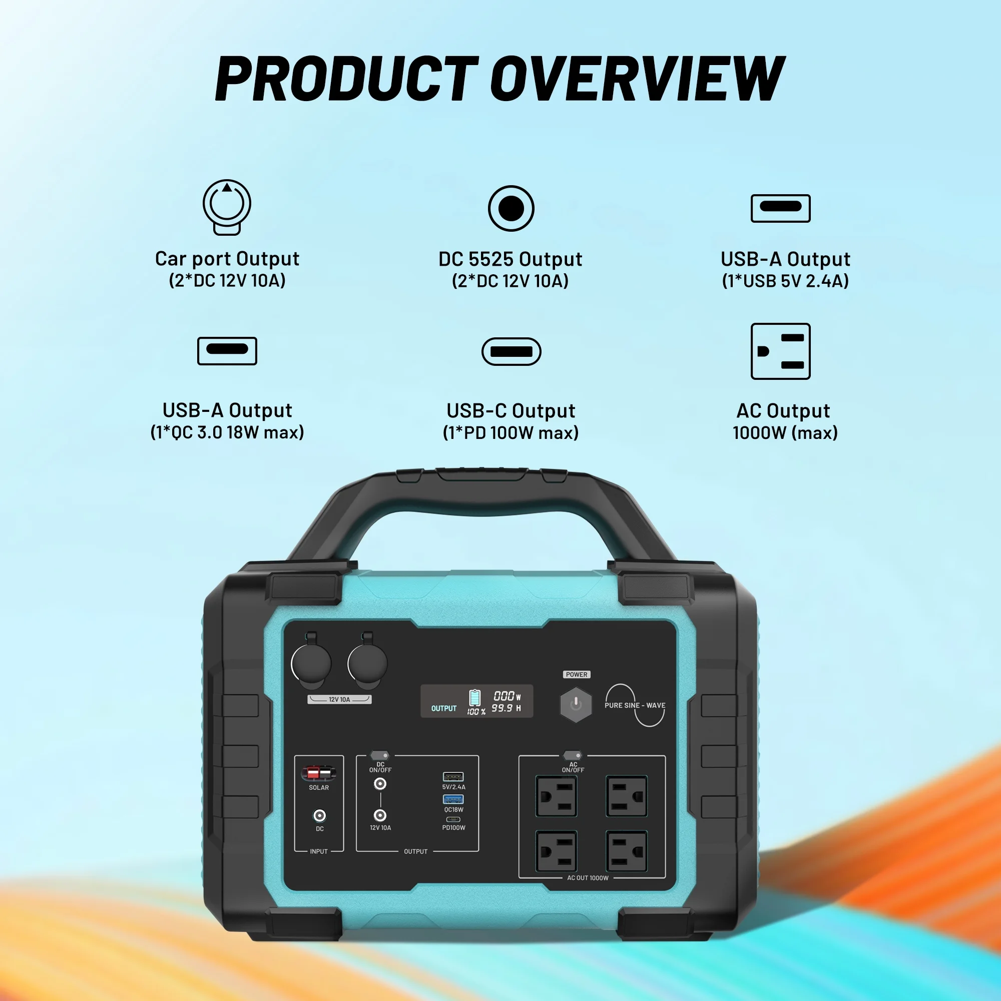 - Reliable Power Supply: This 1000W portable power station with a battery capacity of 1024Wh�?5.6V 40Ah�?ensures a stable and sustainable power source for your home, camping, or emergency situations.