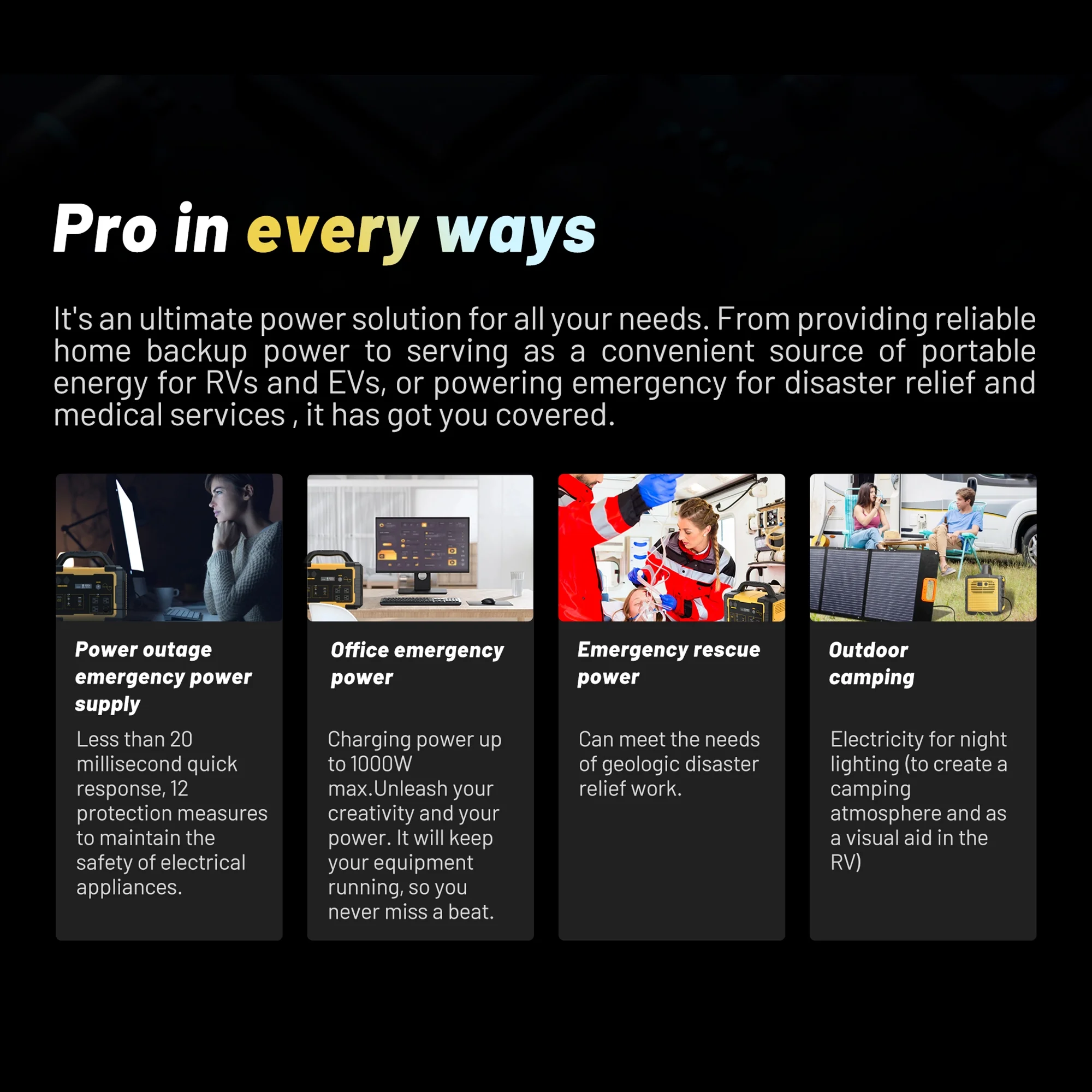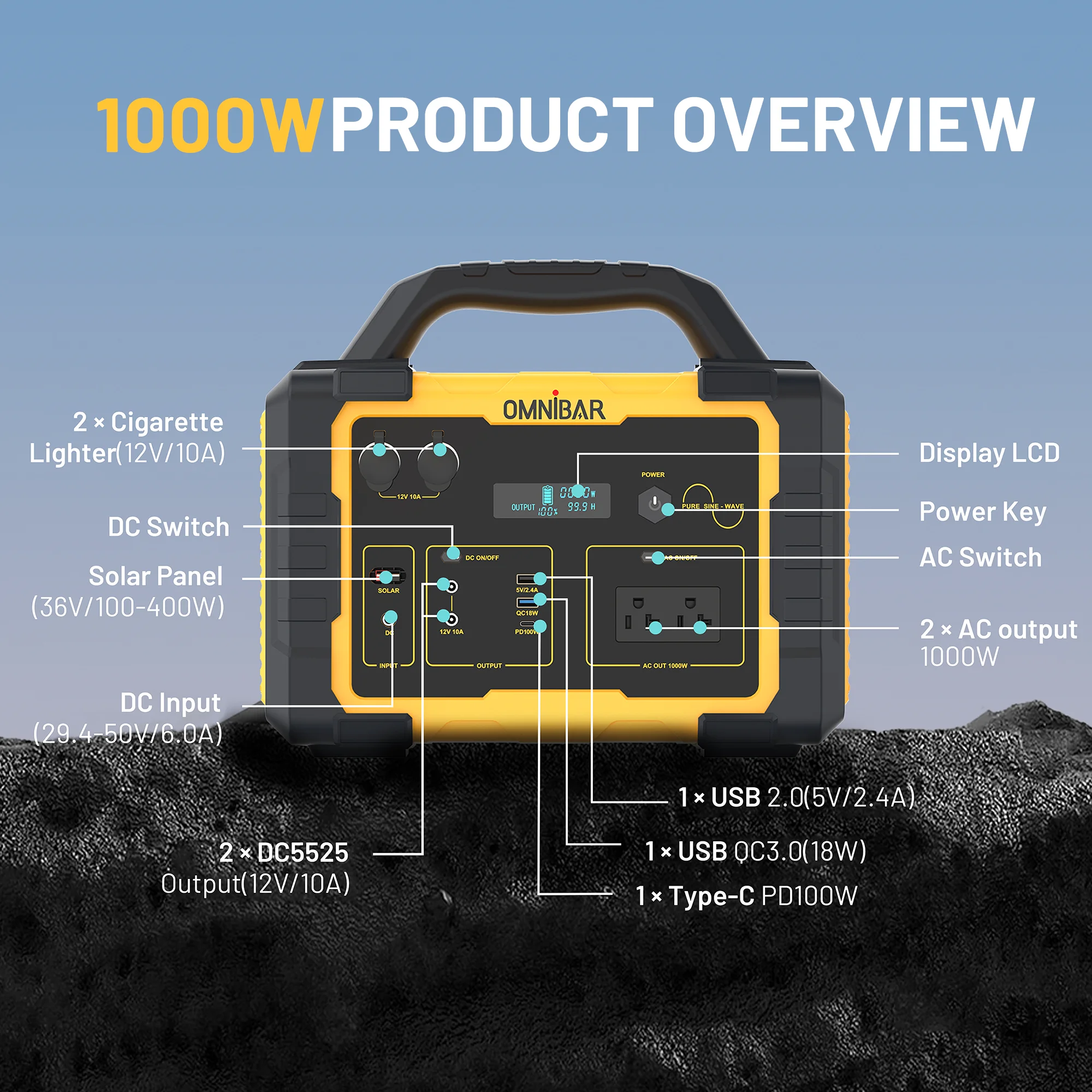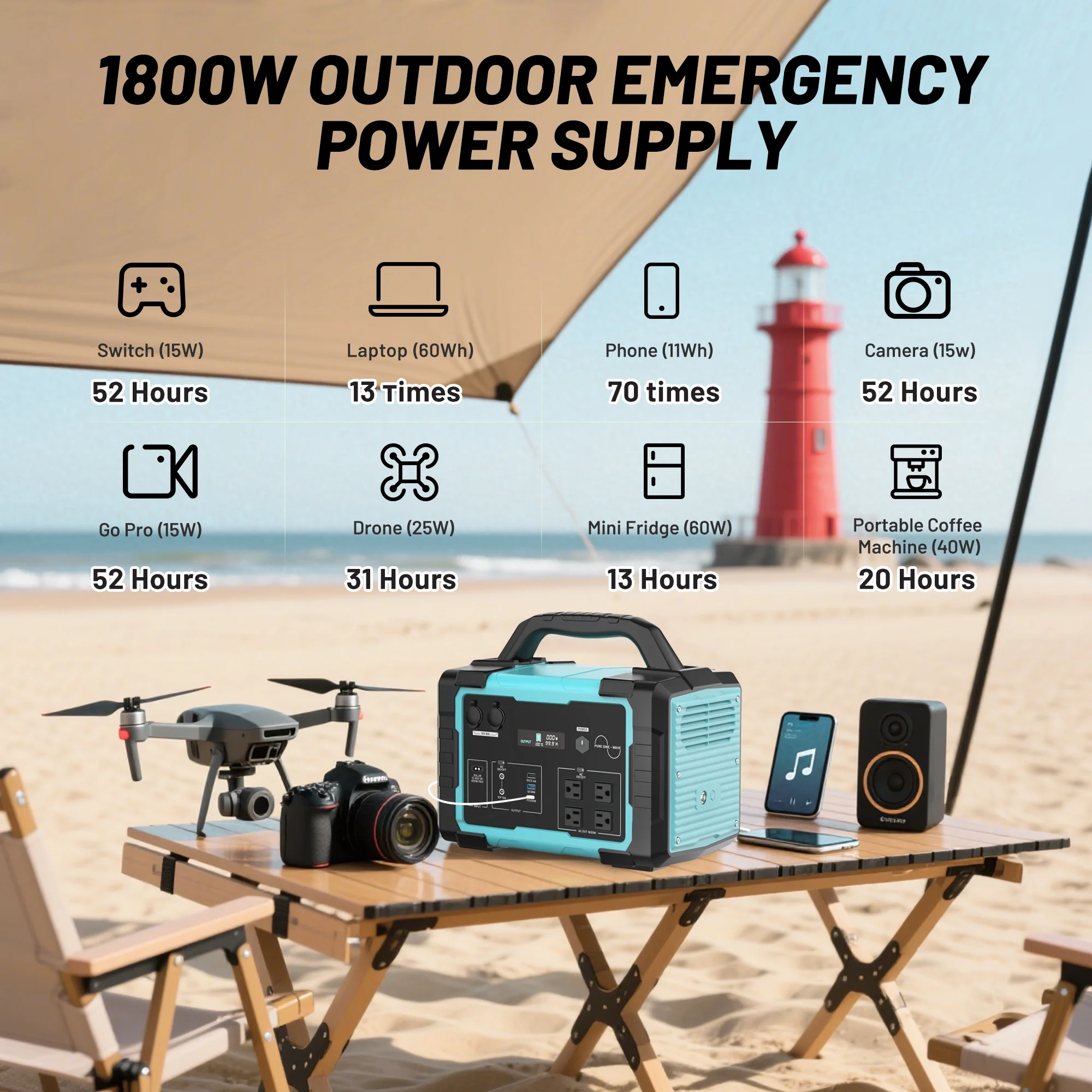 - Reliable Power Supply: This 1000W portable power station with a battery capacity of 1024Wh�?5.6V 40Ah�?ensures a stable and sustainable power source for your home, camping, or emergency situations.