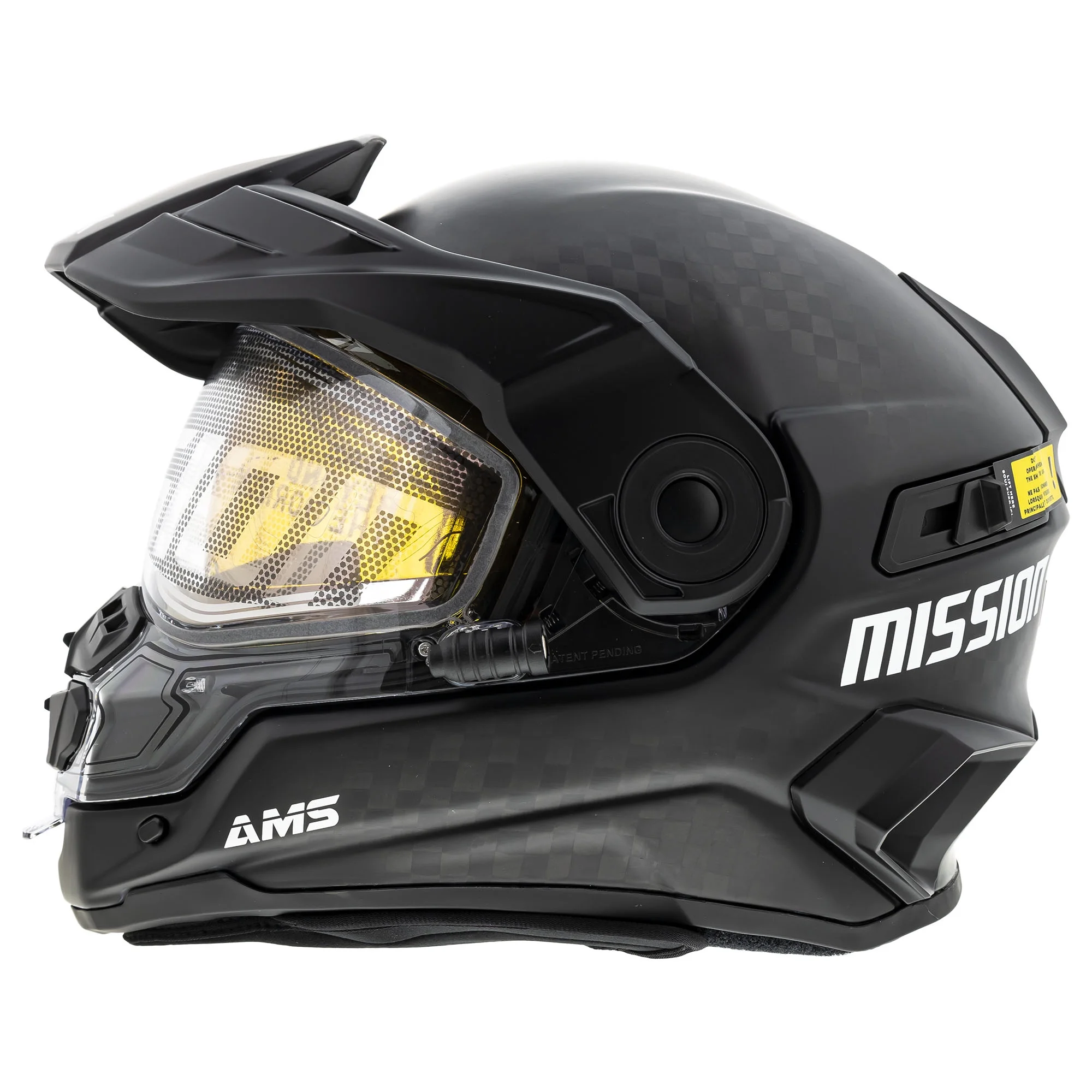 Experience a unique helmet that redefines trail riding. Ultra lightweight, insulated and aerodynamic, the Mission is designed to let you enjoy longer rides and at full speed without fear of extreme cold. Efficient in reducing the risk of fogging, the helmet introduces AMS, an integrated air management system. A CKX exclusive, AMS technology (patent pending) allows you to enjoy a clean environment, free from condensation and fogging by wicking away moist air to the outside. Maintain full visibility while riding and when stopping, take advantage of a wide opening by lifting the oversized visor. In one simple movement and without removing the helmet, you can drink, eat or converse with your trail-riding buddies!
