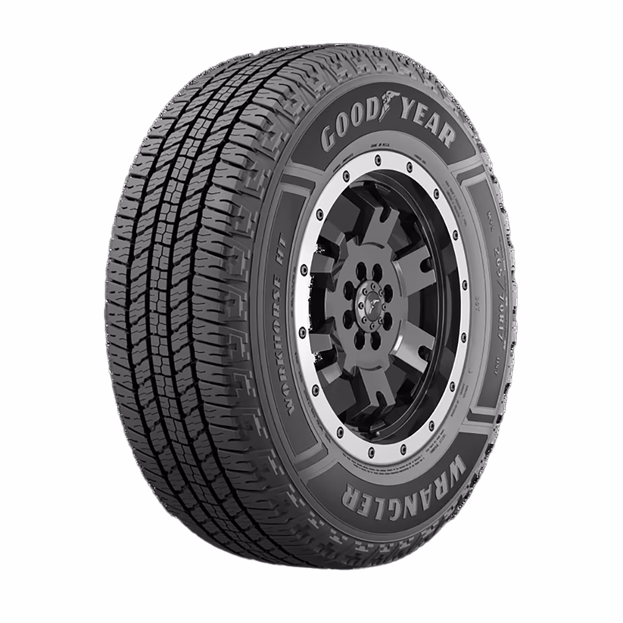 Goodyear's Wrangler Workhorse HT is an all-season, highway terrain tire for light trucks and SUVs. Backed by a 60,000 mile limited manufacturer tread life, the Wrangler Workhorse HT's deep, wide grooves enhance grip in dry, wet, and light winter weather conditions while an optimized design lowers road noises and vibrations to create a quiet, comfortable ride for drivers and passengers.