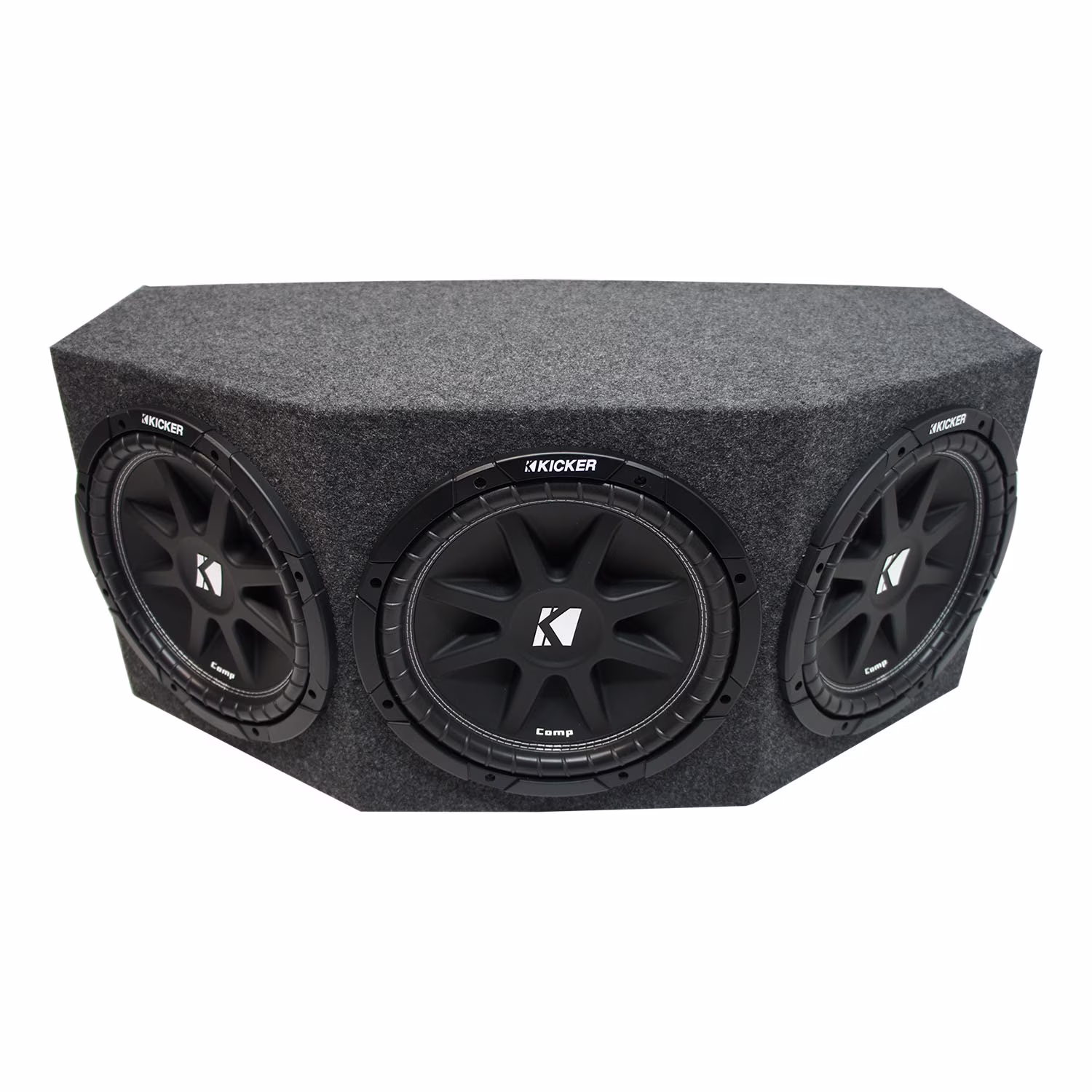 - Comes with three Kicker 43C124 12" Comp Series subwoofers, each delivering 150W RMS and 300W peak power at 4 ohms SVC