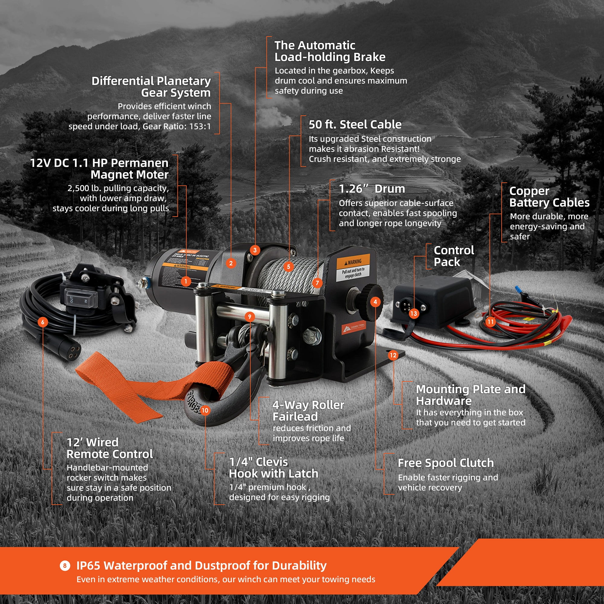 - Ozark Trail 2500LB ATV ELECTRIC WINCH