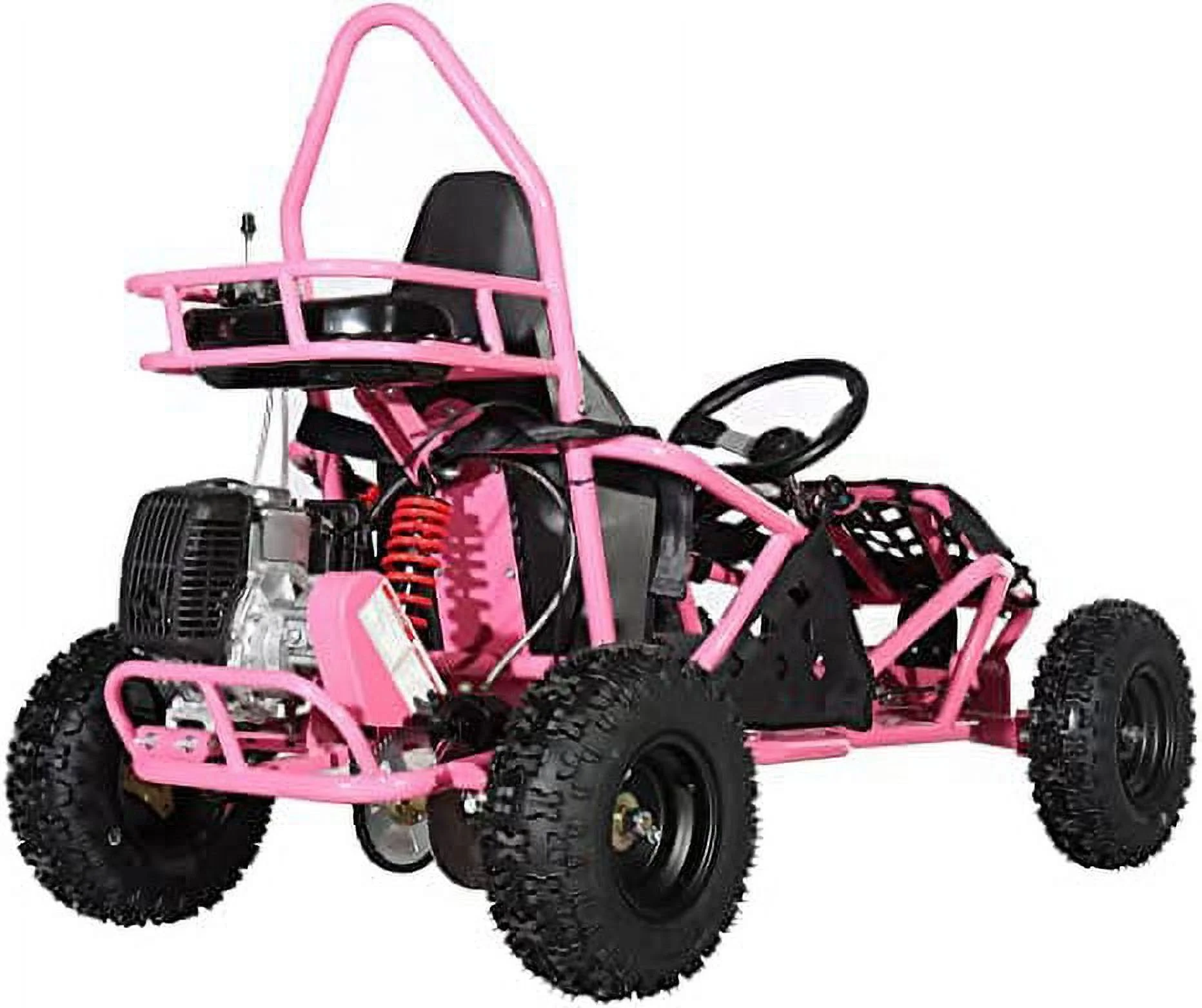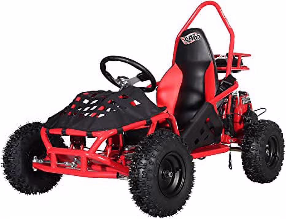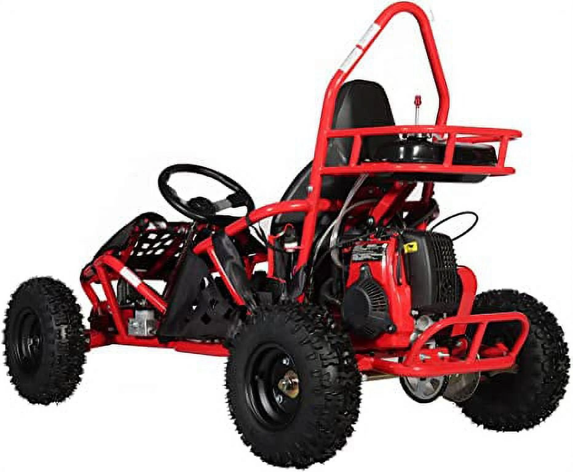 - Gas-Powered Go Kart: Simply refill the gas tank and continue riding, and has a longer range
