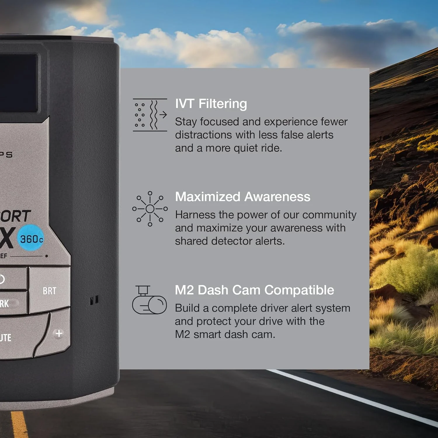 The MAX 360c features AutoLearn? Technology, which customizes radar detection to your drive. GPS intelligence, IVT filtering, and Auto Sensitivity work together to eliminate false alerts by learning your route and adjusting sensitivity based on your vehicle's speed. Connect to the Drive Smarter? community to get live, shared alerts from other detectors and drivers across the country. Plus, with Apple CarPlay? & Android Auto? compatibility, you can easily view your route and interact with alerts on your vehicle's display. Elevate your driving experience with the Escort MAX 360c��where innovation meets unmatched protection.