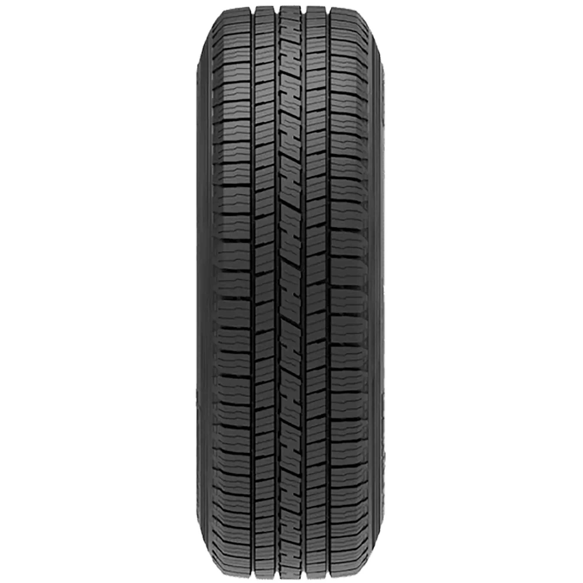 - Symmetrical tread pattern allows for better traction and handling in dry, wet, and light winter weather conditions