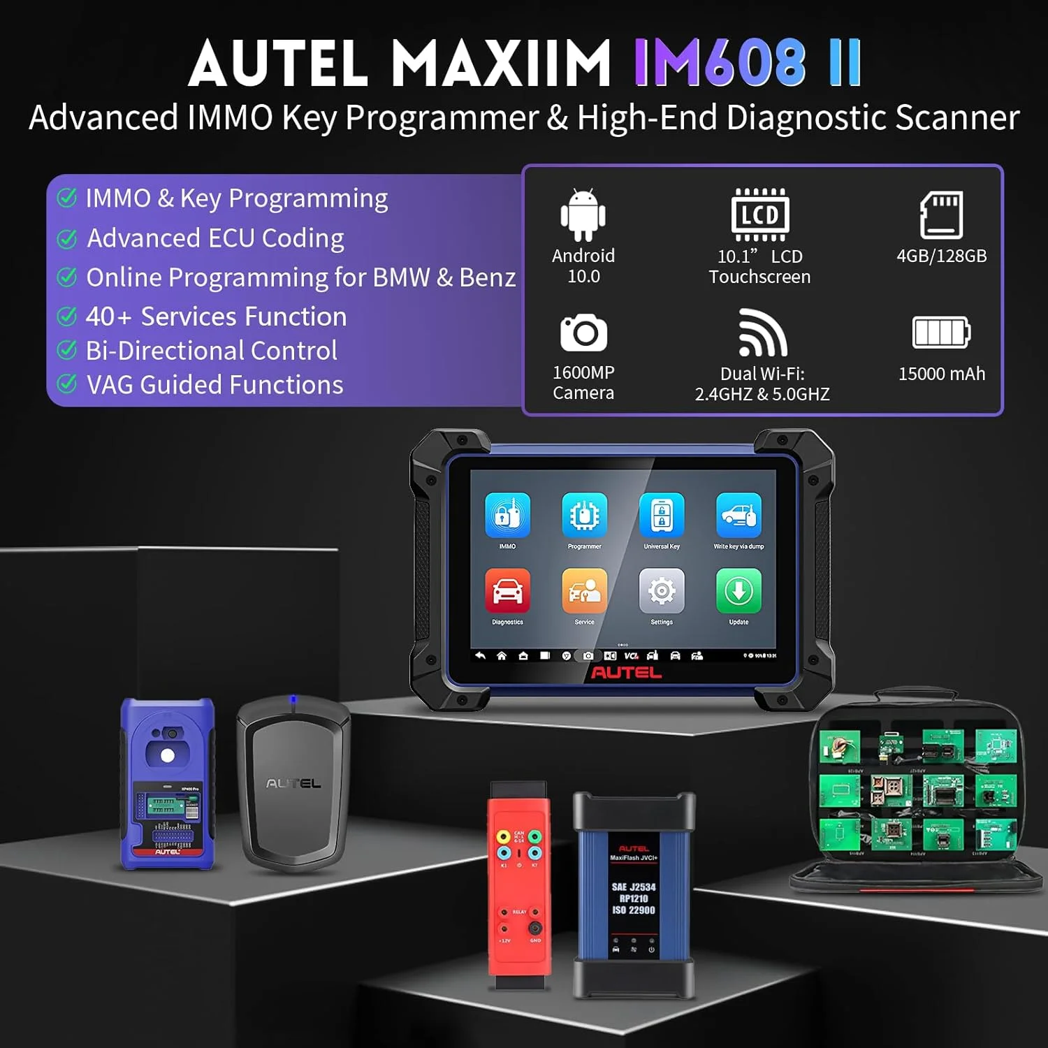 - The Autel IM608 II features an advanced Android 10 operating system, 128GB of large storage capacity, and supports high-capacity SD cards, ensuring smooth system operation and rapid responsiveness. These updates not only offer more intuitive interface but also resolved possible latency problems happened in older models, improving the running and response speed .