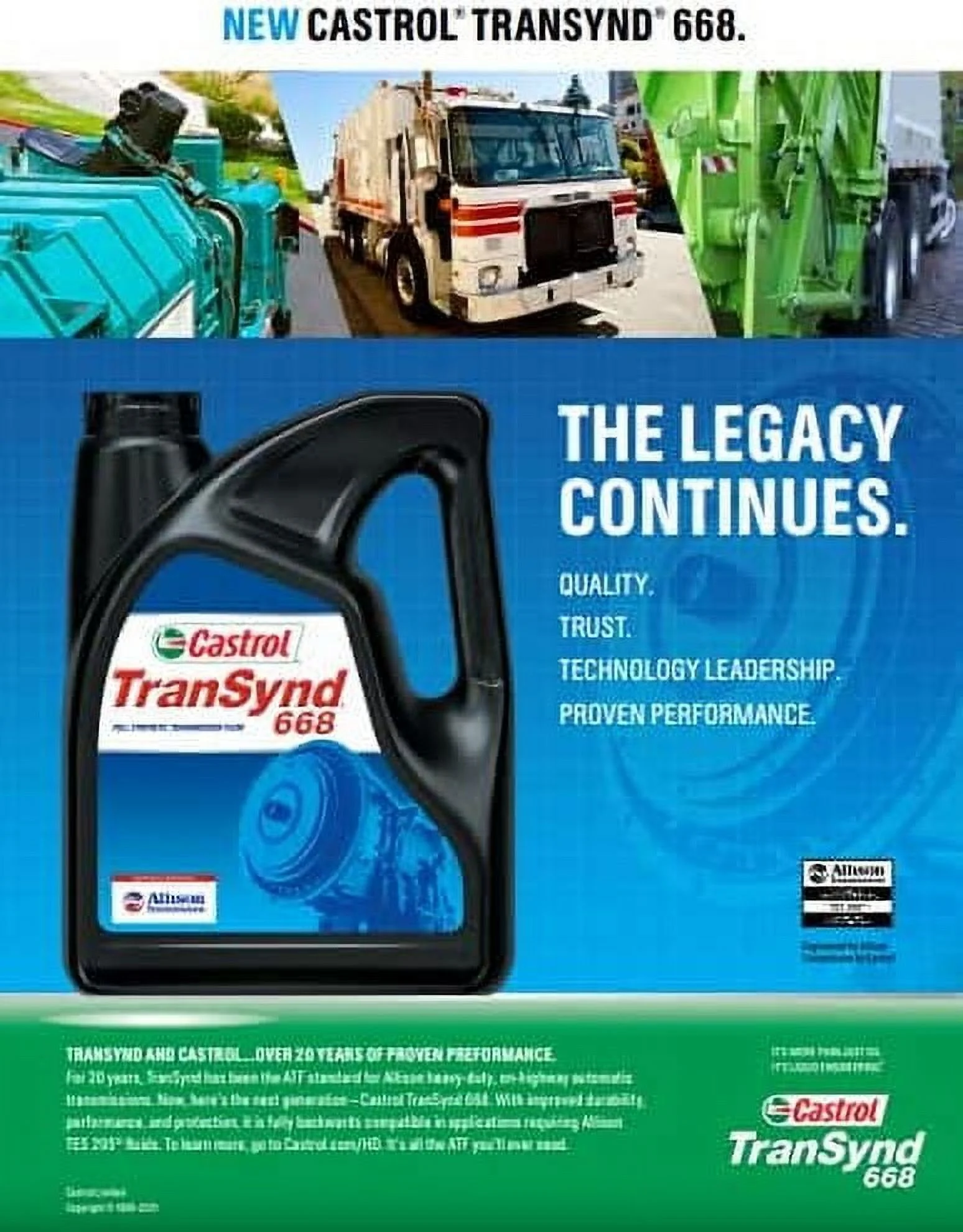 - Full-synthetic automatic transmission fluid designed specifically for ALLISON transmissions