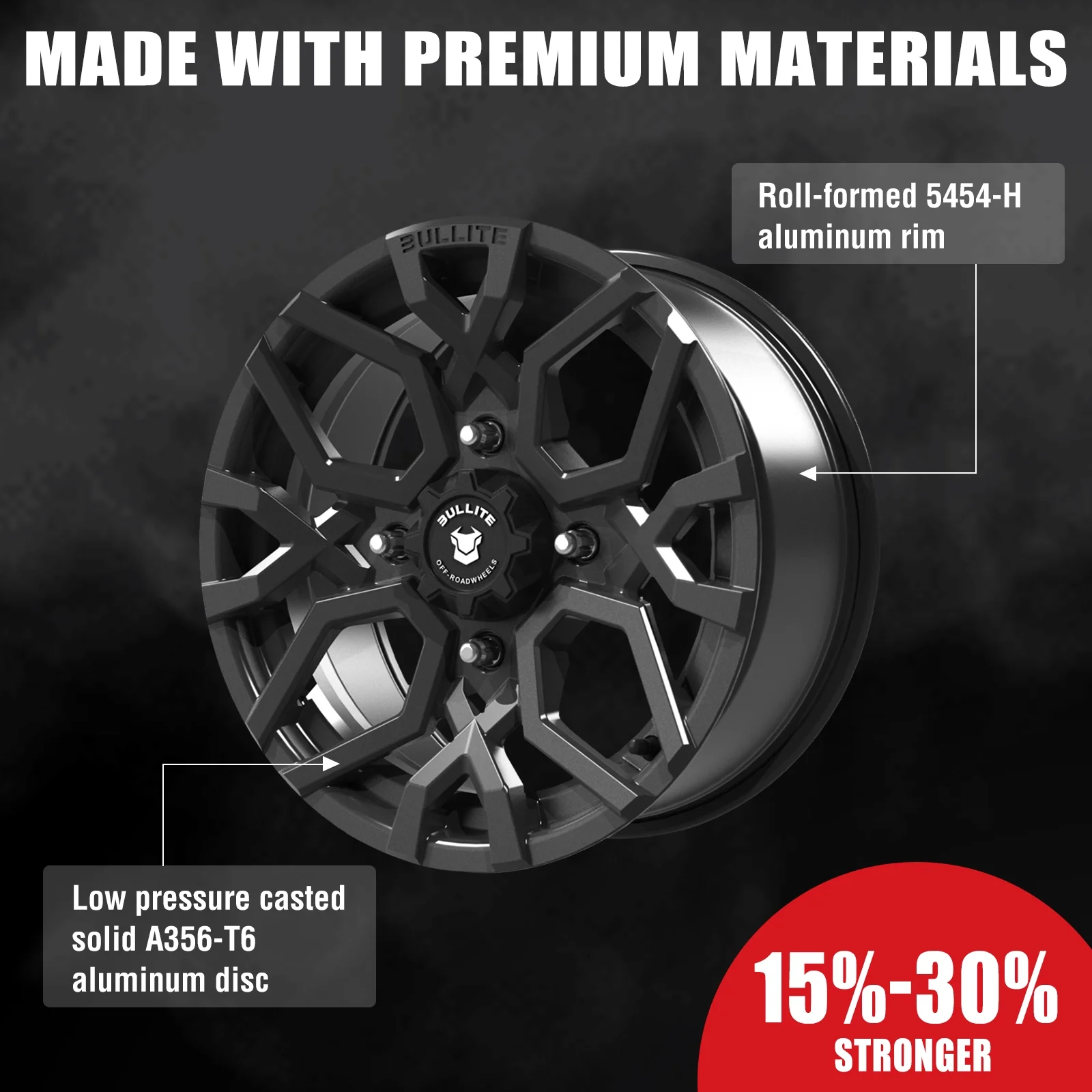 - Bullite Wheels Offroad UTV ATV SXS Beadlock Rims: Fits machines with 4x156 Bolt Pattern with a hub bore less than 132mm. Works with various ATV, UTV, SXS, Quads. Ensure fitment compatibility by checking that your machine's bolt pattern, center hole, offset, and stud thread size match that of our ATV wheels and nuts prior to making your purchase.