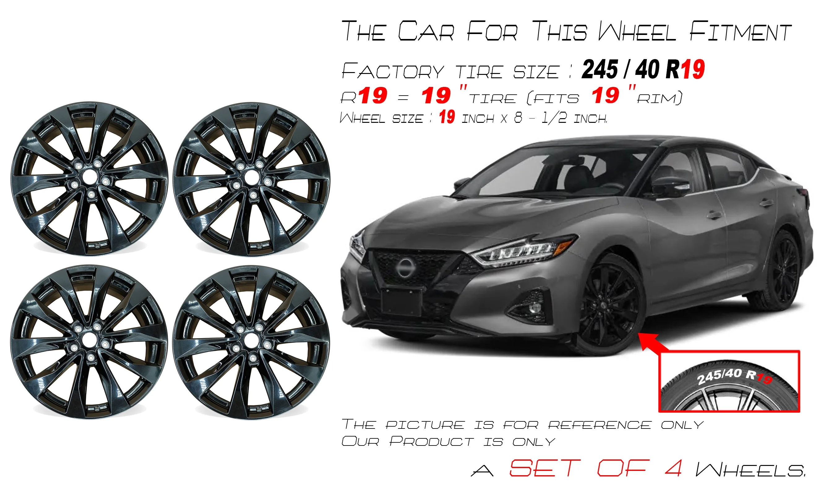 - ? MAXIMA 2016-2018 19x8-1/2 (alloy, 10 spoke), painted (black) ? OEM Tire Size:245/40R19 ? Color/Finish: GLOSS BLACK