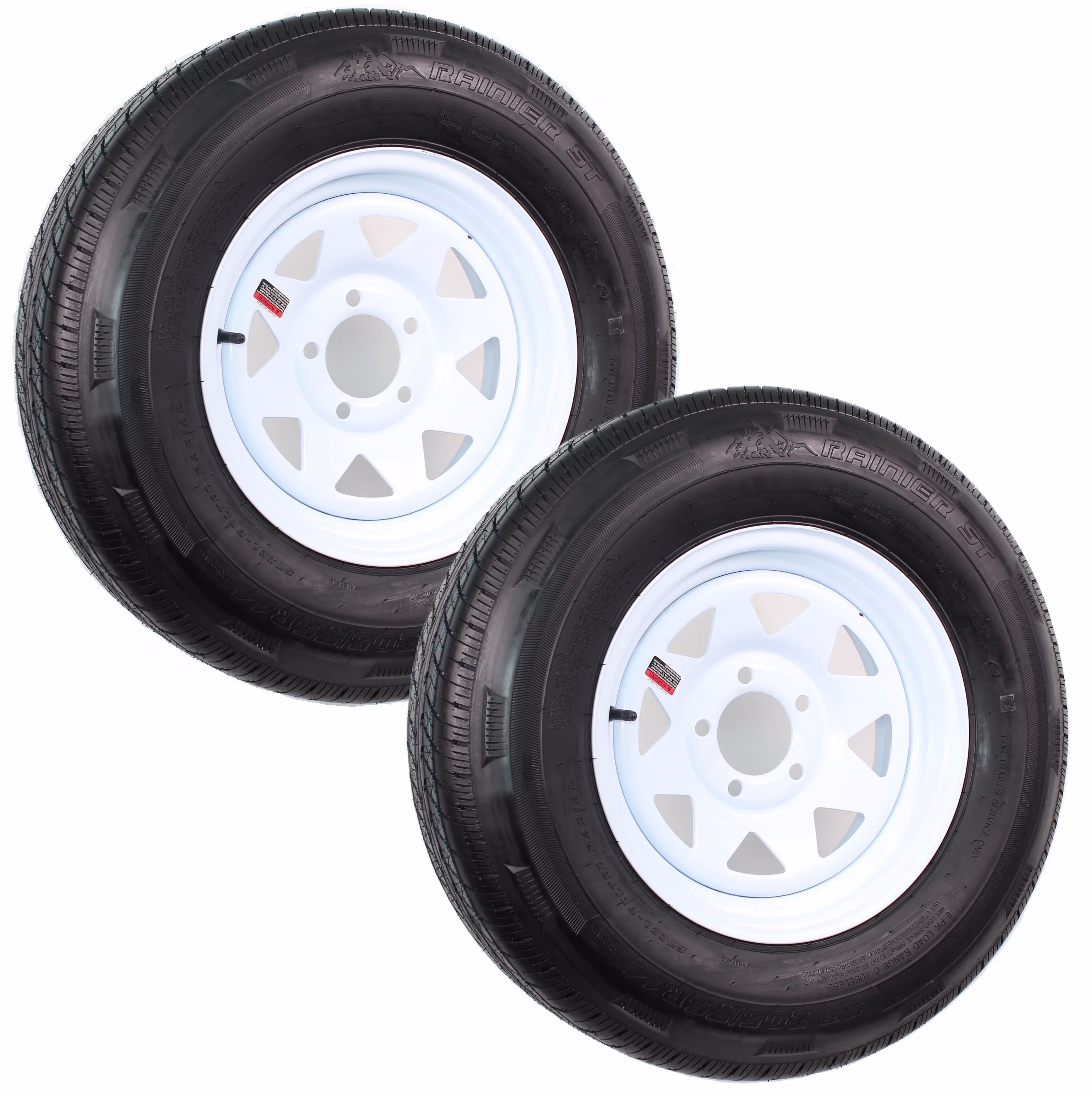 - 2-Pack Radial Trailer Tire On Rim ST205/75R14 LRD 14" 5 Lug Spoke White