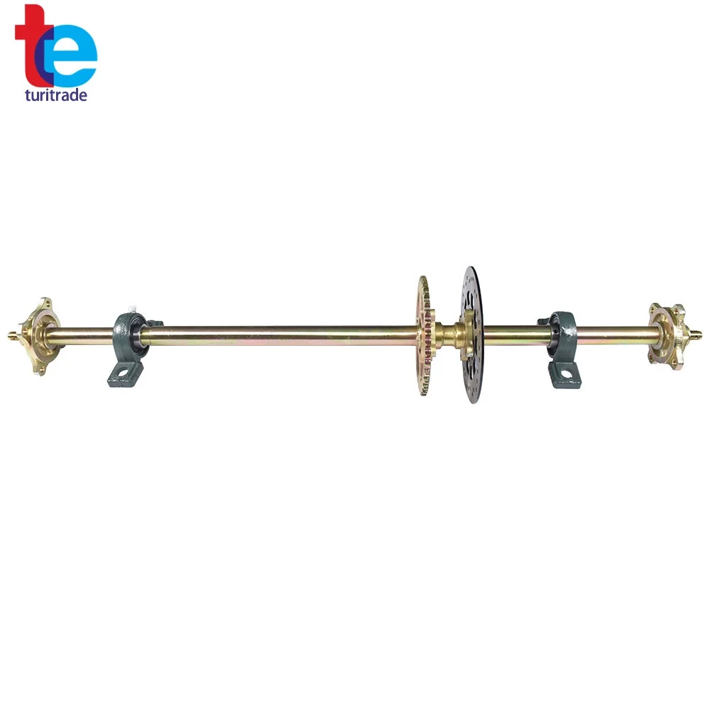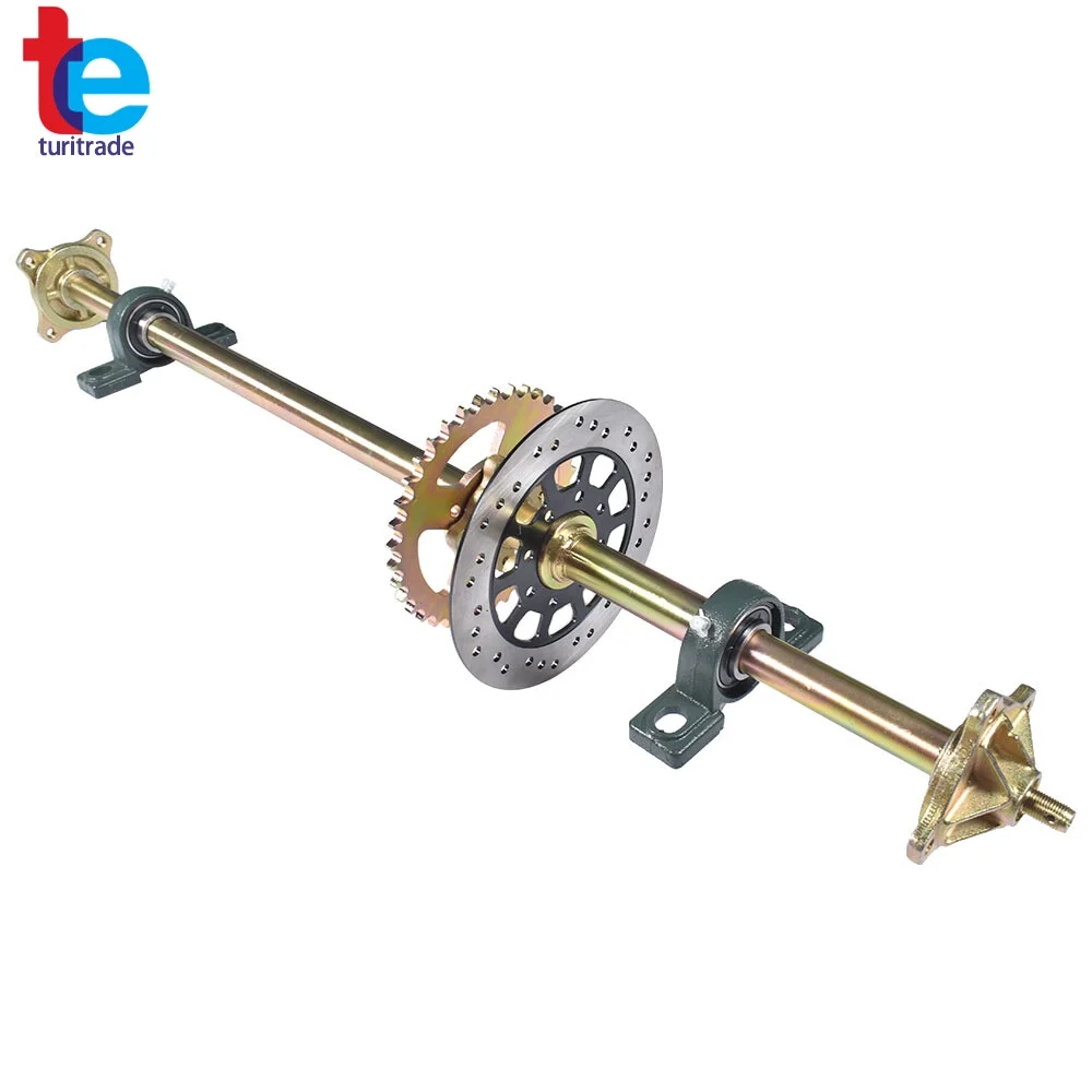 Rear Axle + Pair of pillow blocks + Sprocket + Brake Disc + Pair of 4 bolt wheel hubs+Chain+Brake assembly
