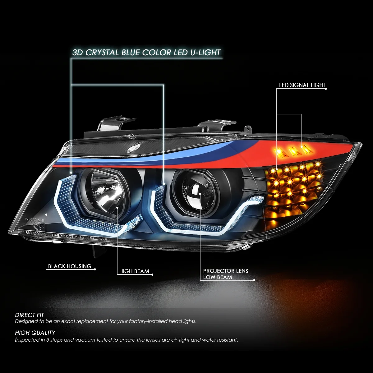 - White LED 3D Halo Angel Eye Lights / Amber LED Turn Signals / M-Style Stripe
