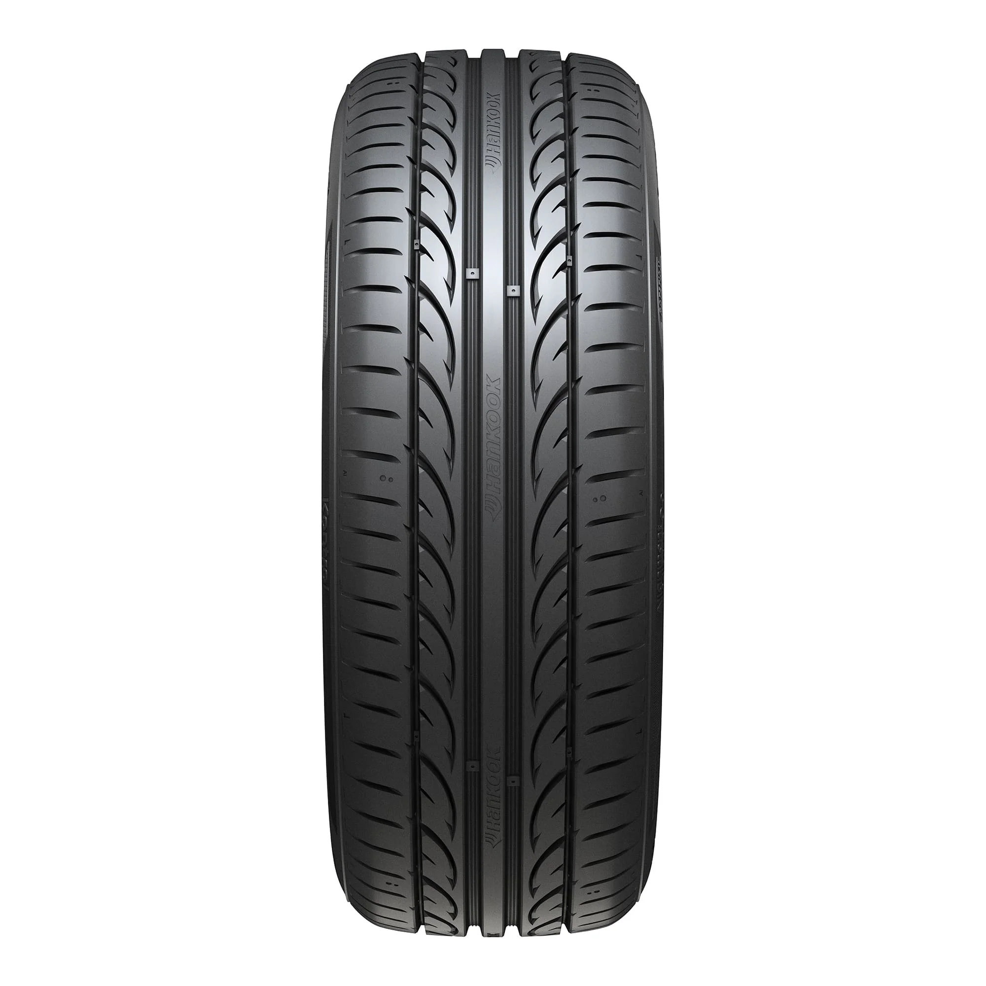 Enjoy the exceptional traction and handling you will get with the Hankook Ventus V12 EV02 tire. As a performance summer tire, you can get maximum value with the purchase of the Ventus V12 EV02 for sports cars, coupes, and high-performance sedans. Enjoy the comfort and control from the enhanced noise reduction and improved traction. These tires are meant for summer use and can function well in warm and dry or wet road conditions. Not intended for use in near-freezing climates, on ice, or through snow, the Hankook Ventus V12 EV02 tire will serve you well during the warmer months of the year. As a radial tire, the V12 EV02 contains a high-grip silica tread compound. This compound includes the use of styrene polymer which provides lower rolling resistance and better fuel economy. The directional tread design contains notched shoulder and 3D sipes around a continuous center rib. This gives enhanced traction and dry handling.
