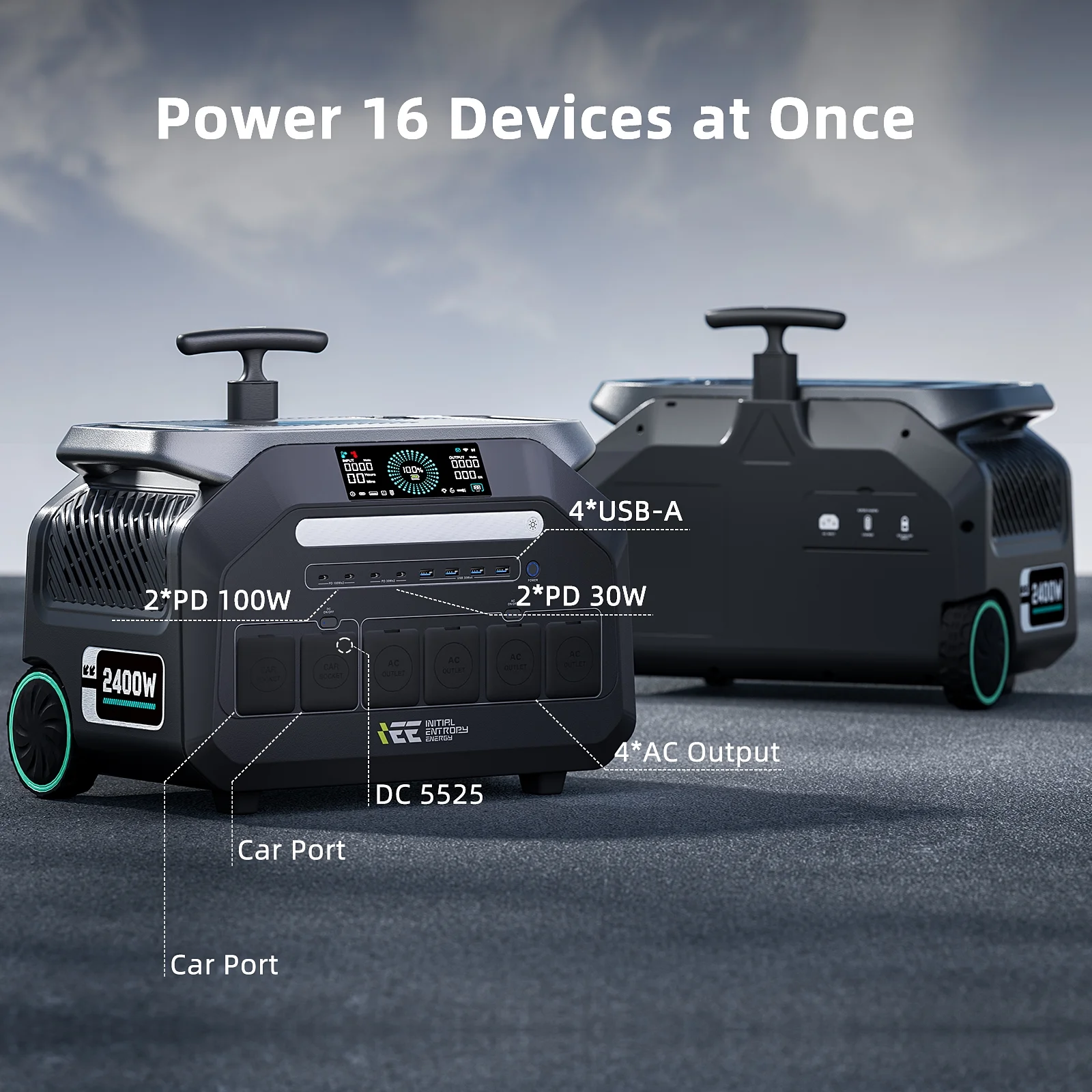 - Smart Control & 16 Output Ports: Use the app to monitor and manage power. Includes 4 AC, 4 USB-A, 4 USB-C PD, 2 DC ports, and 2 car sockets��charge up to 16 devices at once.