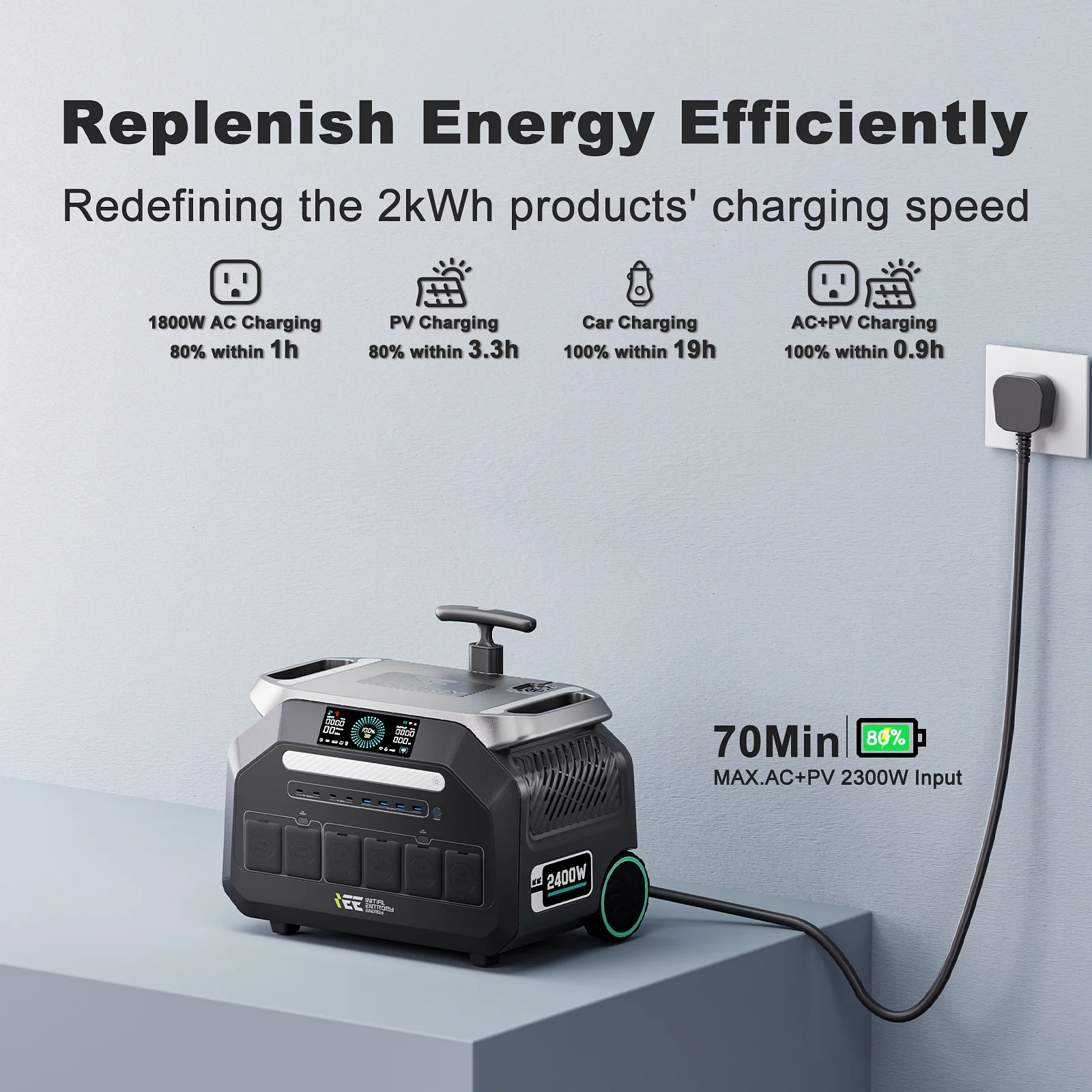 - 0.9-Hour Ultra-Fast Recharge: Go from 0 to 100% in just 0.9H via 1800W AC + 500W solar input. Also supports wall, solar, and car charging.