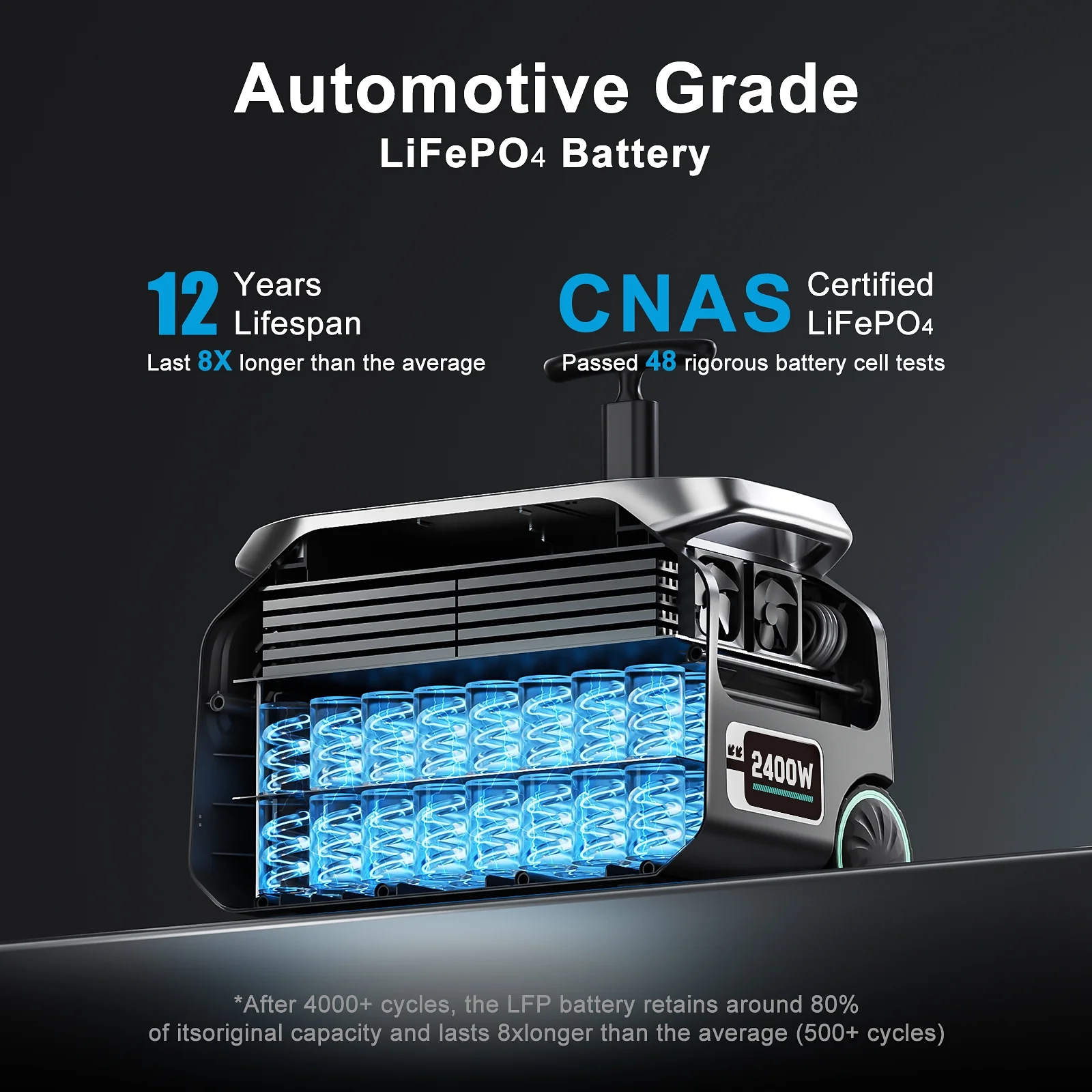- Durable & Safe LiFePO4 Battery: 4000+ charge cycles with up to 12 years of use. Features BMS protection, temperature control, and safe, stable performance.