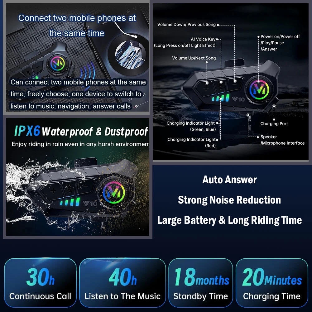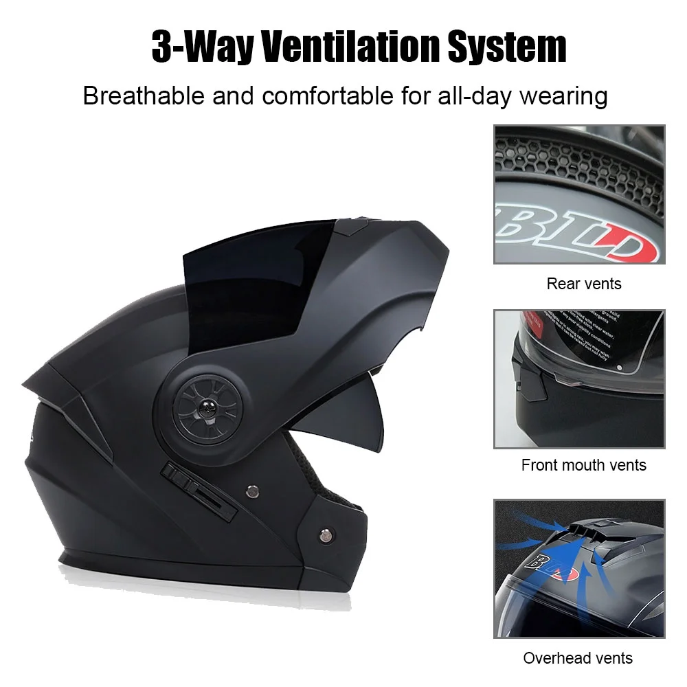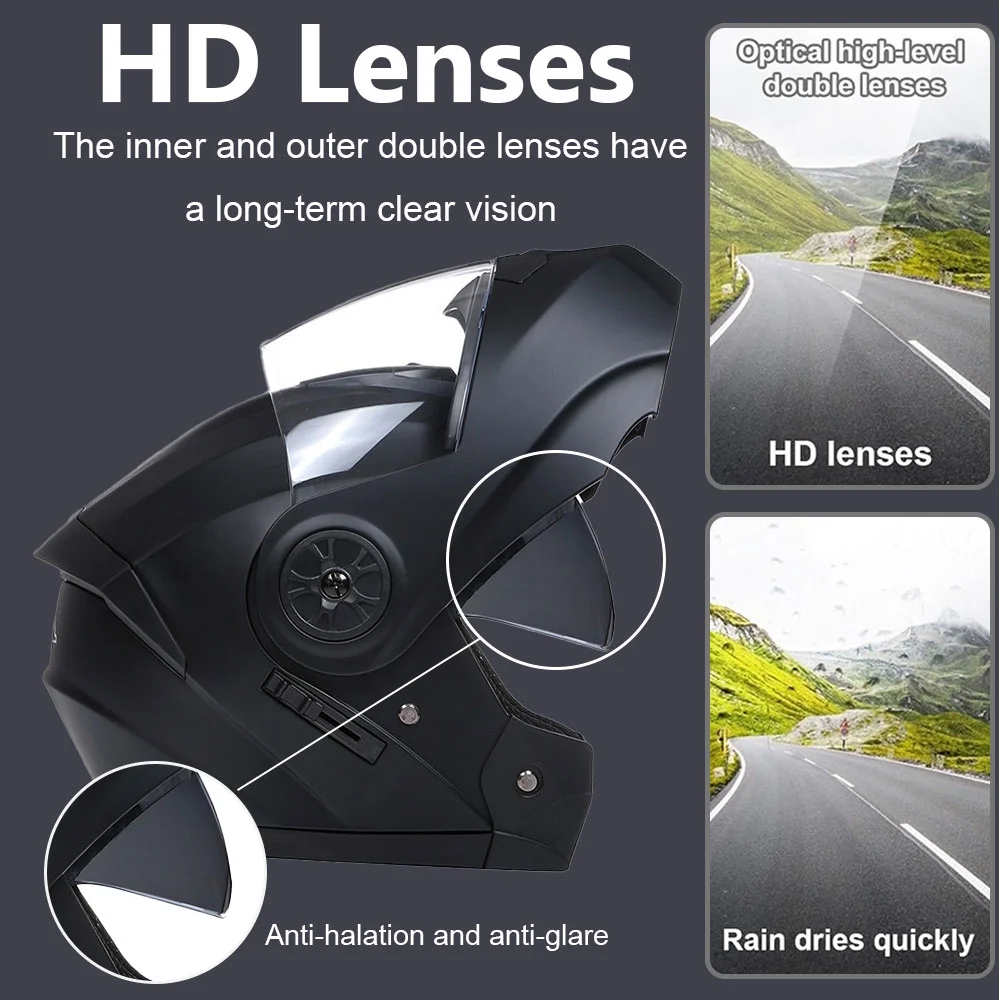 Motorbike Helmets Bluetooth Flip up Modular High Strength Shell Motorcycle Helmet, DOT Approved Motor Bike Cascos Para Motos Para Hombre Full Face Helmet with Dual - Speaker Headset
