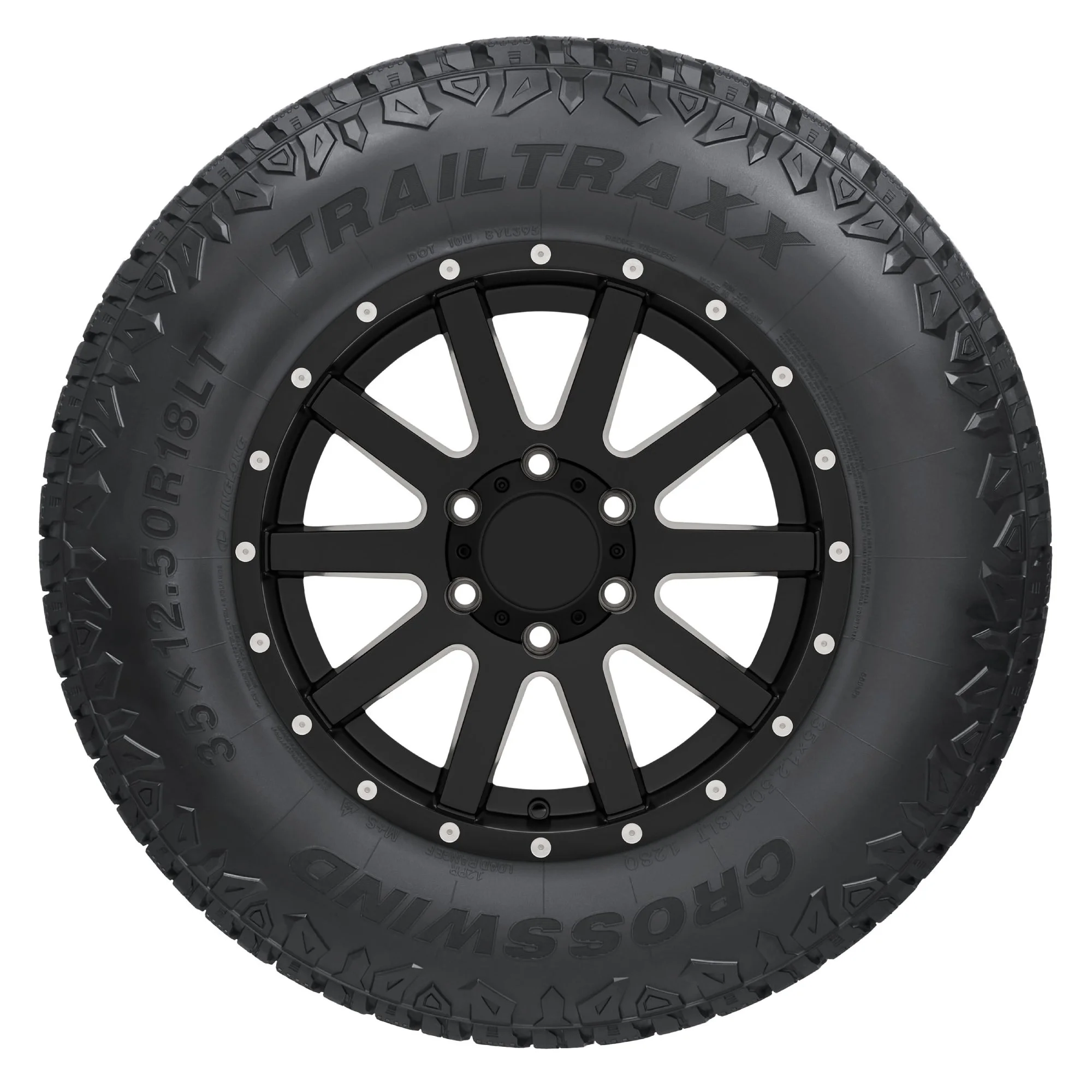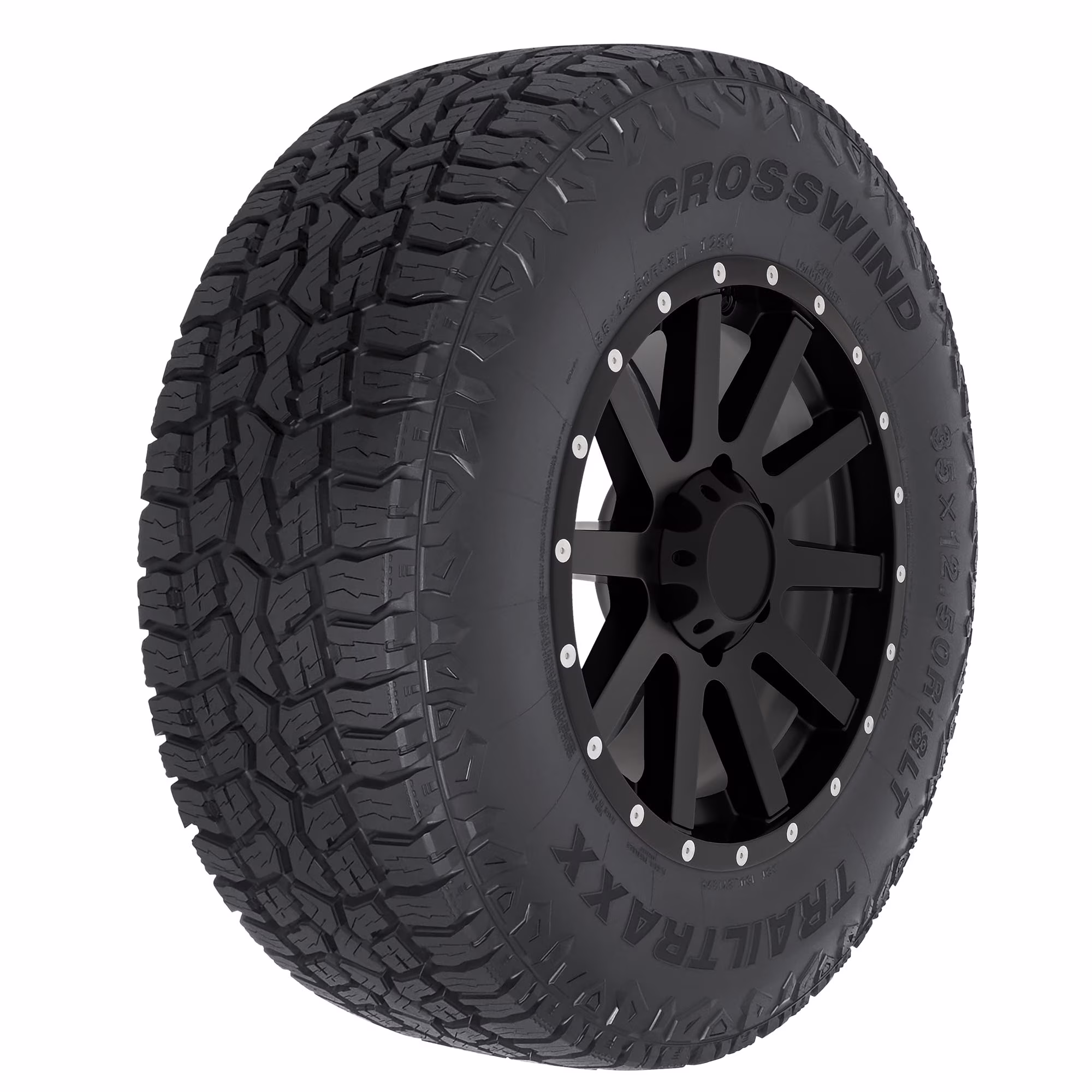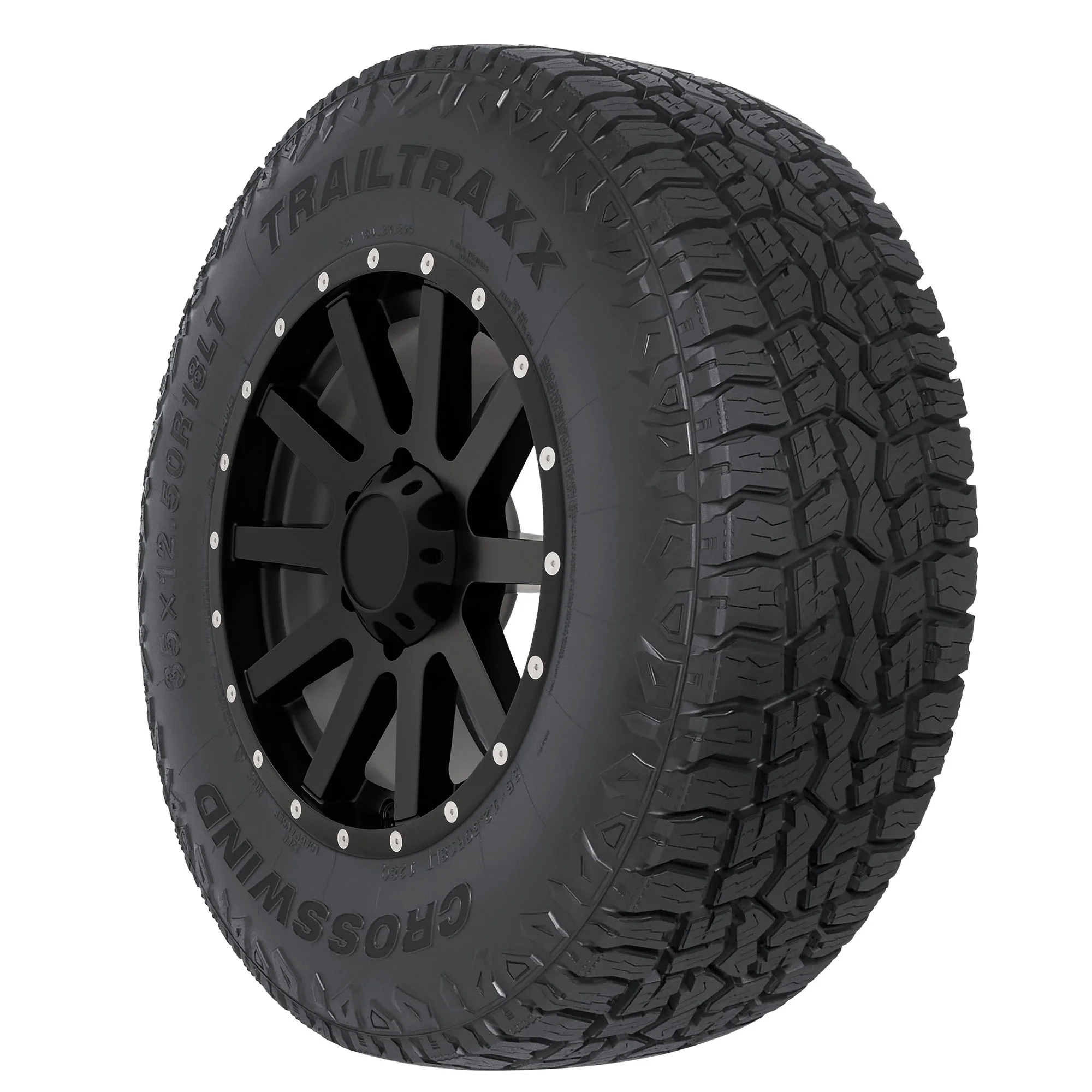 The Crosswind Trail Traxx is an all-terrain tire that's designed for use on Jeeps, light trucks, and SUVs. Backed by a 55,000 mile limited manufacturer tread life warranty, the Trail Traxx's optimized block tread pattern boosts on- and off-road traction while also boosting handling and promoting a longer tread life. A reinforced sidewall reduces punctures and damage, and the Trail Traxx also features an Anti-Stones design that ejects stones, deep mud, snow, and slush from the tread for consistent traction.