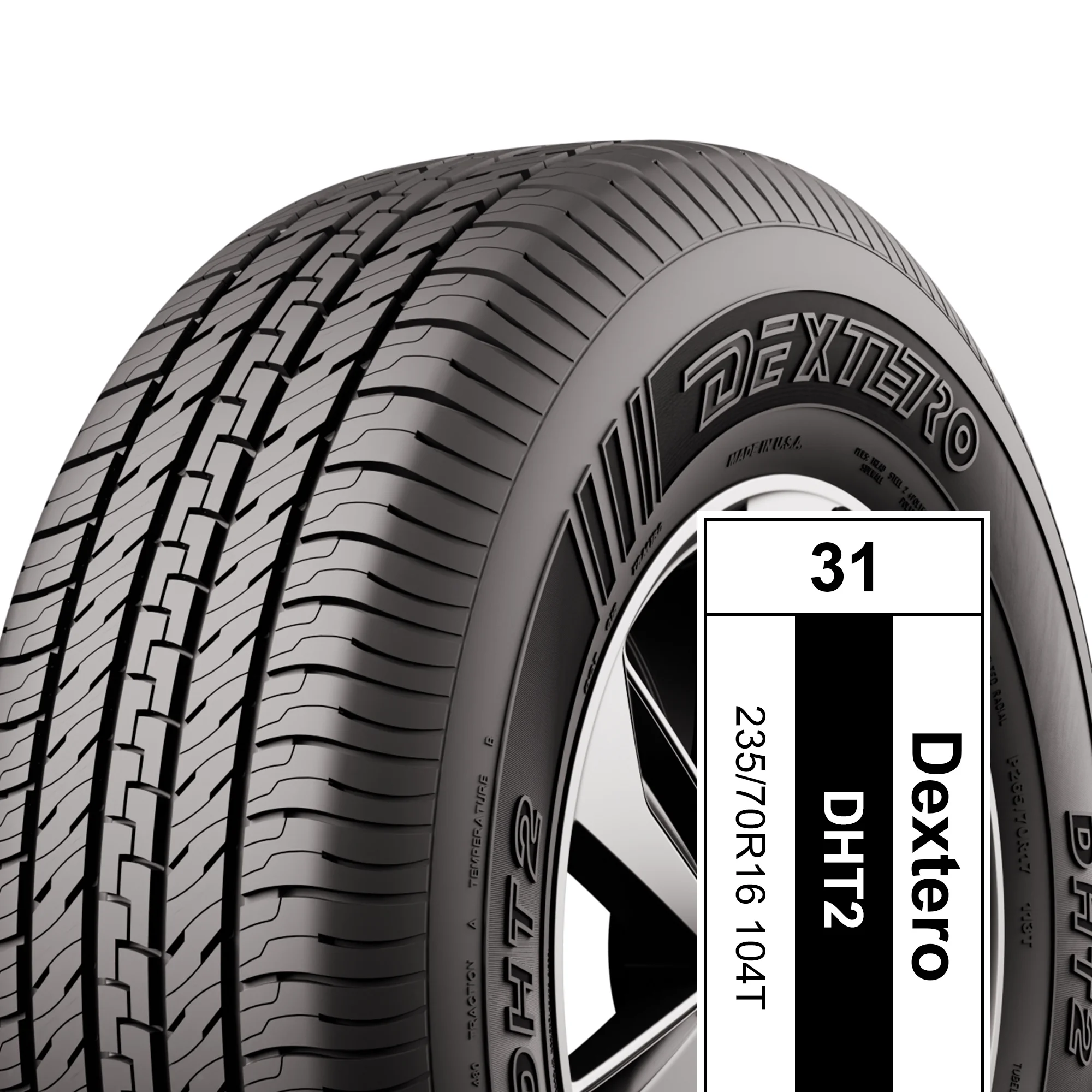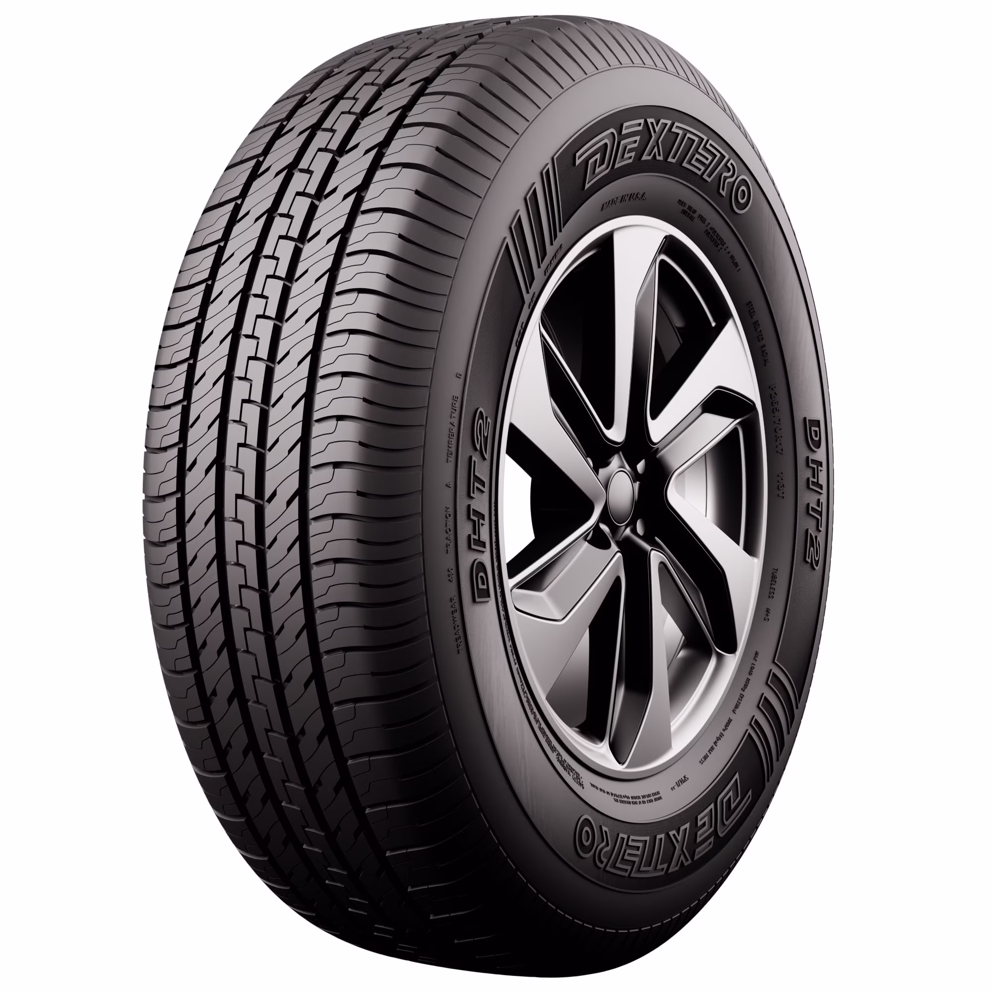 The Dextero DHT2 is an all-season tire that's designed for use on CUVs, SUVs, and light trucks. Built with four wide grooves that force water out of the tread to resist hydroplaning, the DHT2's optimized tread pattern reduces road noises and vibrations for a quiet, comfortable ride. Additionally, the DHT2 features Dextero's body tension technology which allows for balanced performance on wet and dry roads.