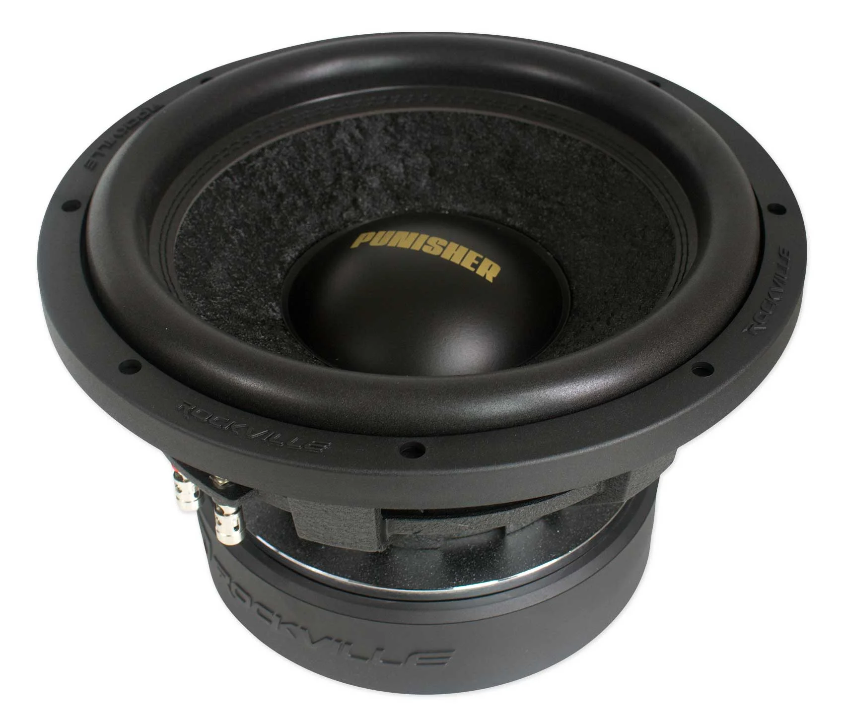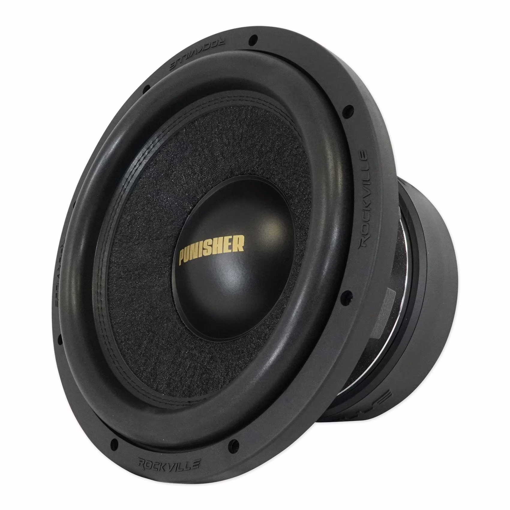 - Features: Rockville PUNISHER Series 12" Dual 2-Ohm Car Subwoofer, Peak Power Handling: 5600 Watts, Program Power Handling: 2800 Watts, CEA Rated RMS Power Handling: 1400 Watts, 3" 4-Layer Black Aluminum Voice Coils Wound with OFC Wire, This voice coil is stable up to 250 degrees celsius! The voice coil windings are made in the USA, Double Stacked 246 Oz Y35 Magnet, Cast Aluminum Basket With Black Sanded Finish, Two Chrome-Plated Binding Post Terminals, Black Non-Pressed Paper Cone