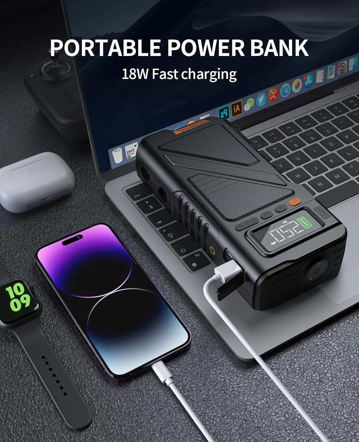 - ?? Adventure-Ready Design:Compact with carry rope, USB-C/18W fast charging, and emergency lighting - perfect for road trips and camping.