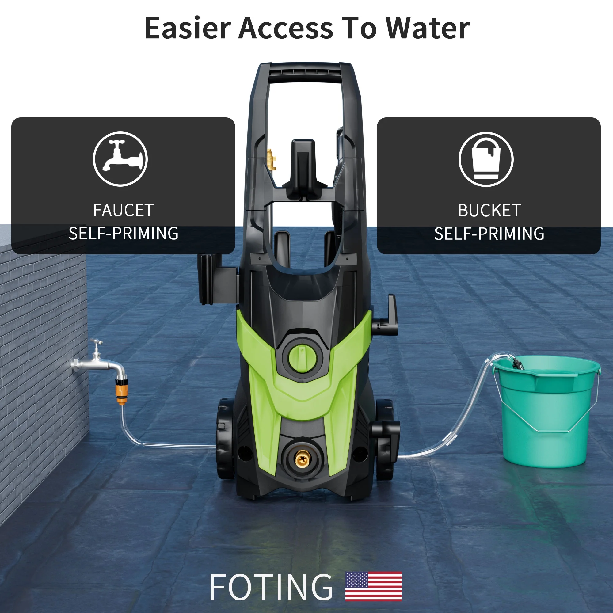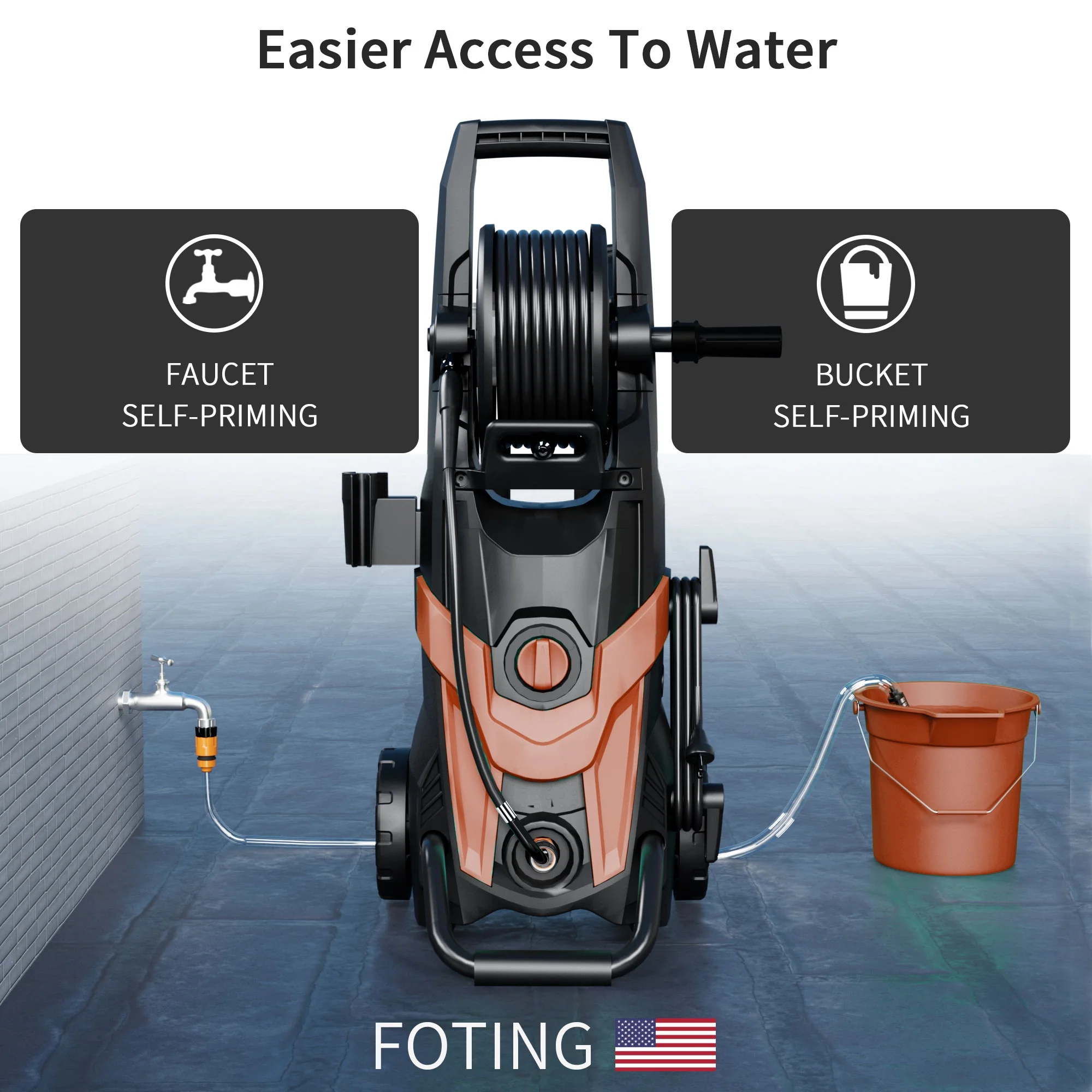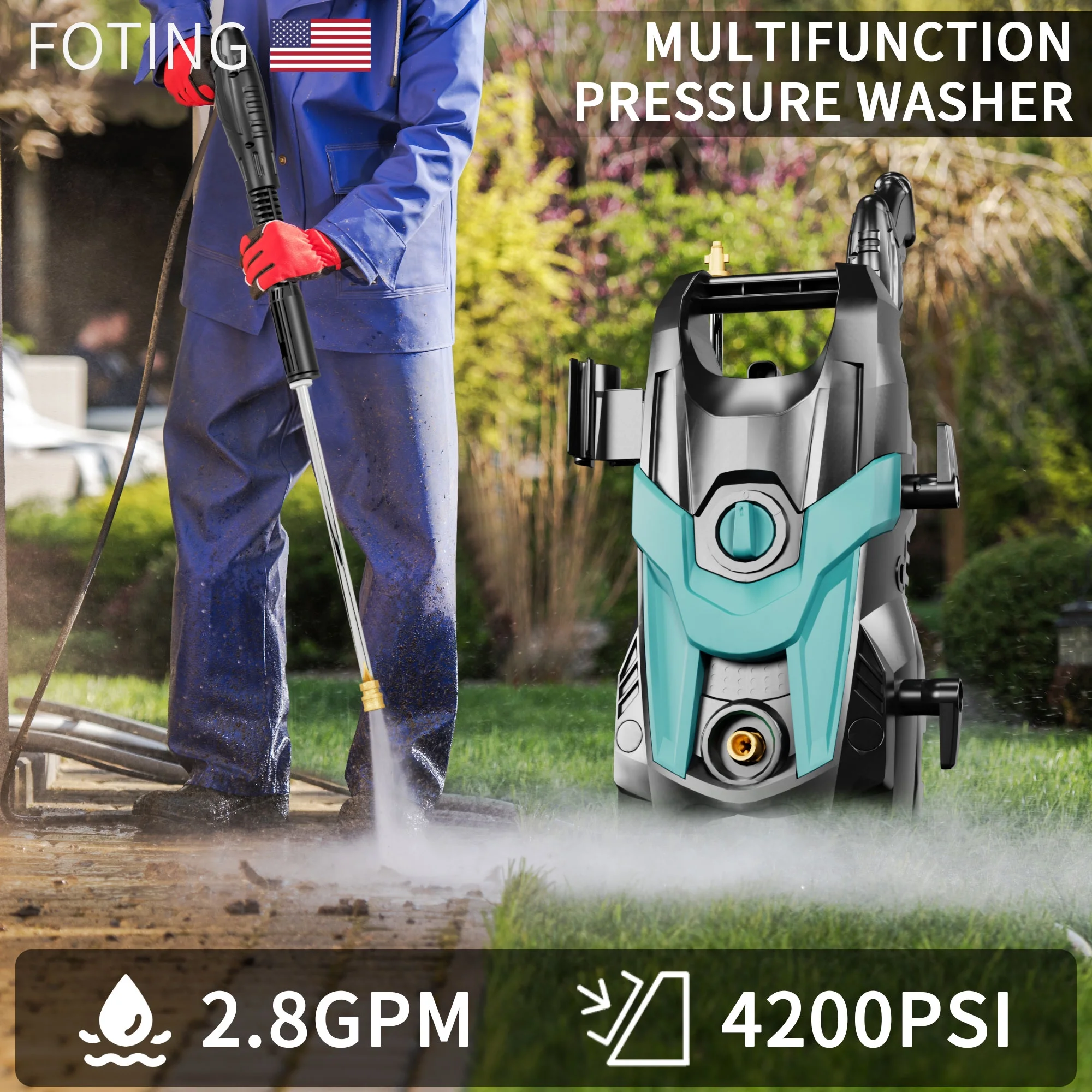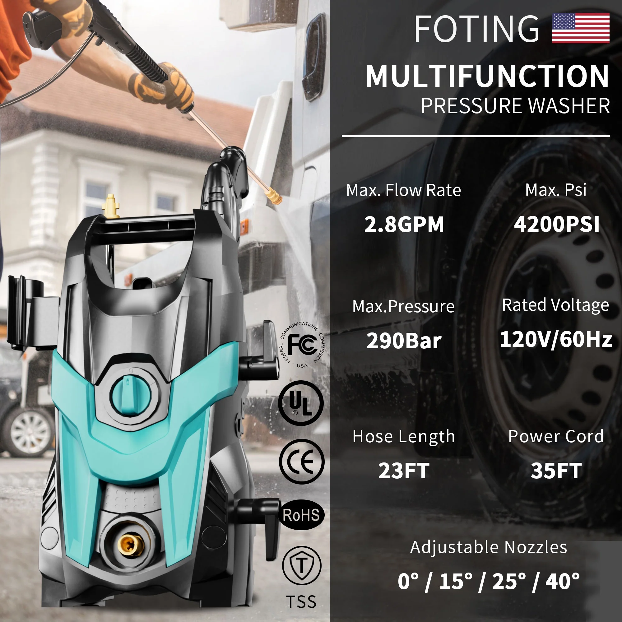 - ��EXTRA HOSE AND FILTER��: Compared to other products, FOTING Pressure Washer comes with extra hose and filter fittings to help you get started quickly, and combined with the 23FT long Hose and 35FT long power cord, it makes it easier for you to wash your vehicle and clean your floors without having to pull the washer