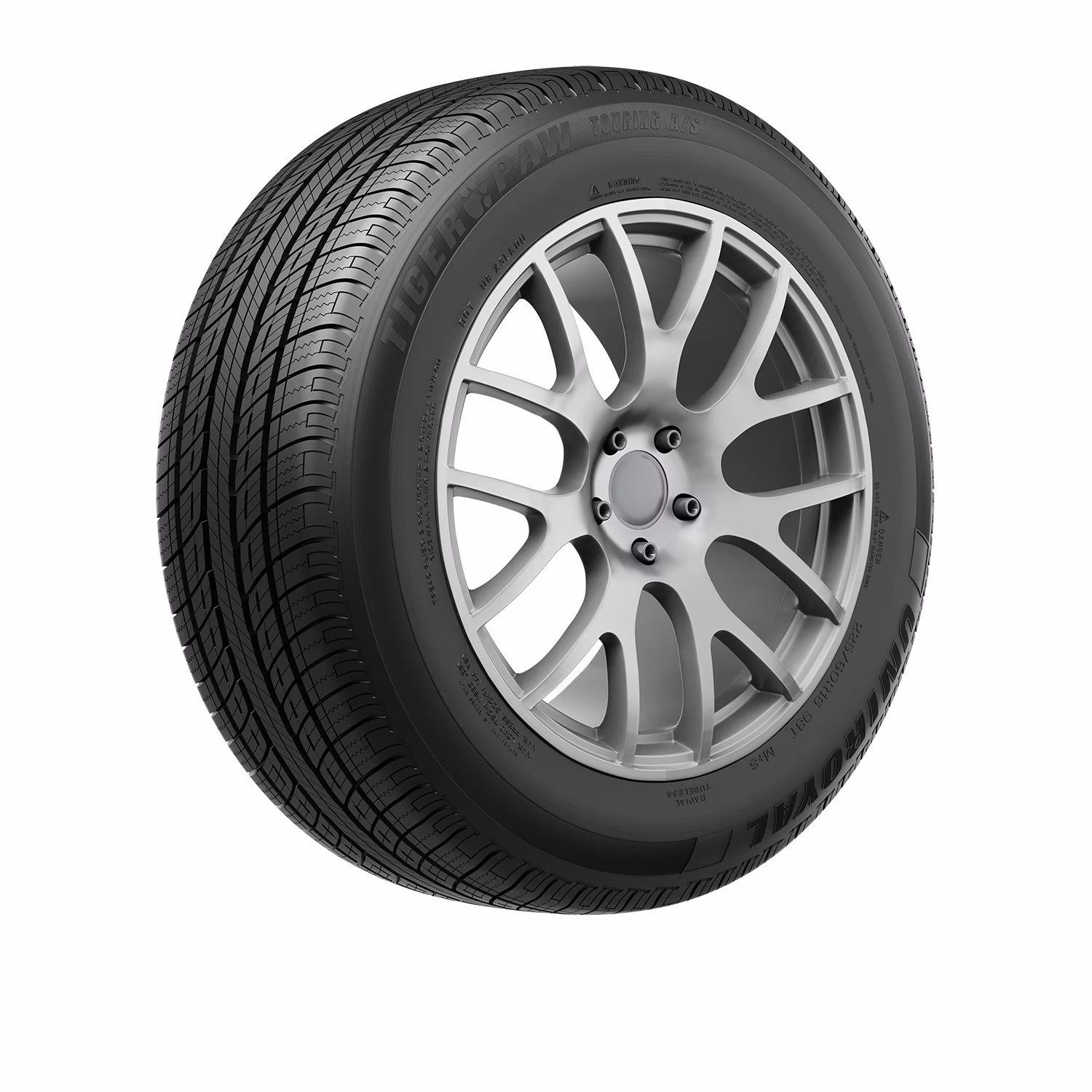 Designed for coupes, sedans, minivans, CUVs, and SUVs, the Uniroyal Tiger Paw Touring A/S is a long-lasting all-season tire. Thanks to a special tread compound, the Tiger Paw Touring A/S provides confident year-round performance and increased tread life. The four wide tread grooves of the Tiger Paw Touring A/S boost water dispersion for reduced risk of hydroplaning and improved wet grip, and the tire also features a DuraShield construction that provides optimum durability for longer tire life. Additionally, the advanced siping technology of the Tiger Paw Touring A/S increases grip in wet and light winter weather conditions by creating additional biting edges.