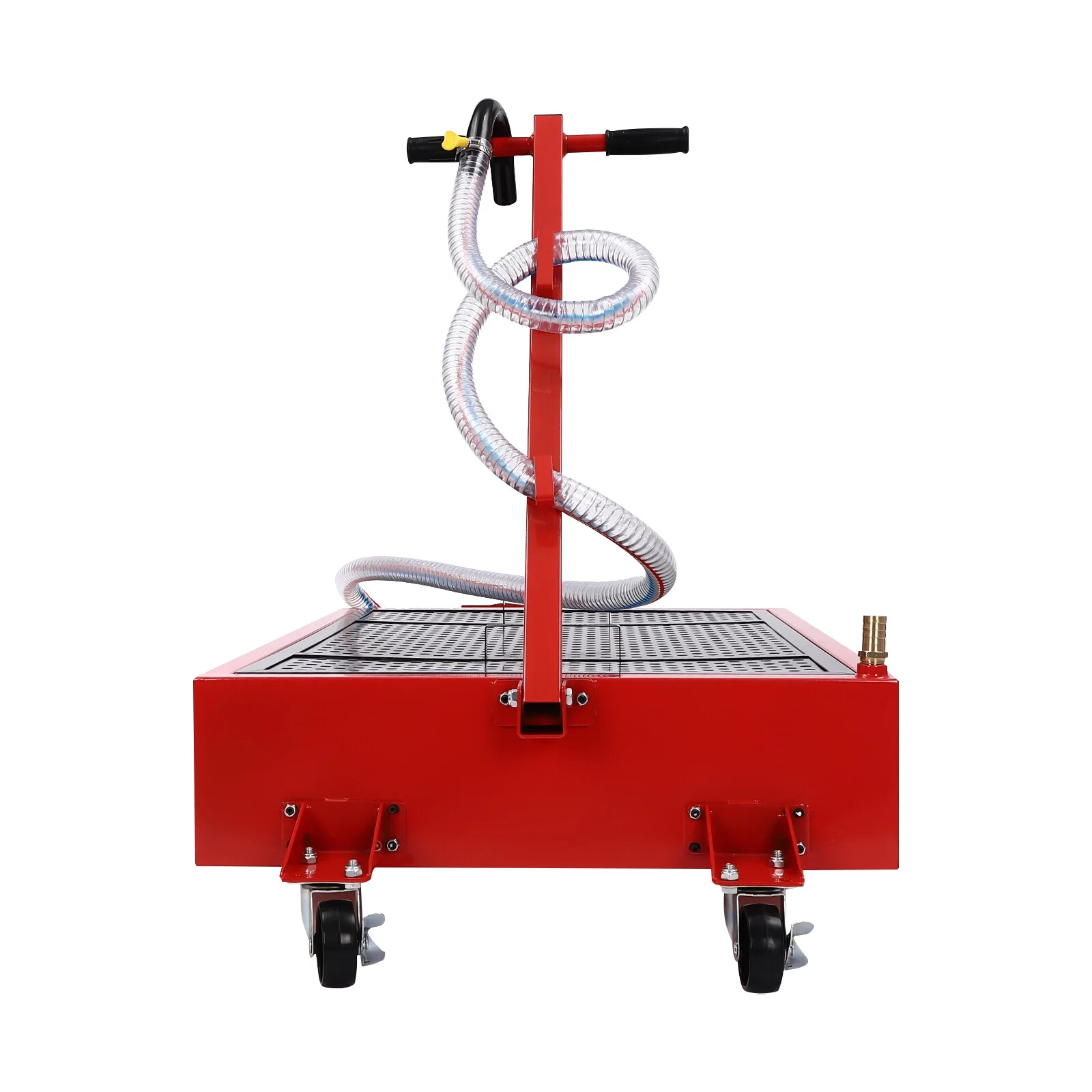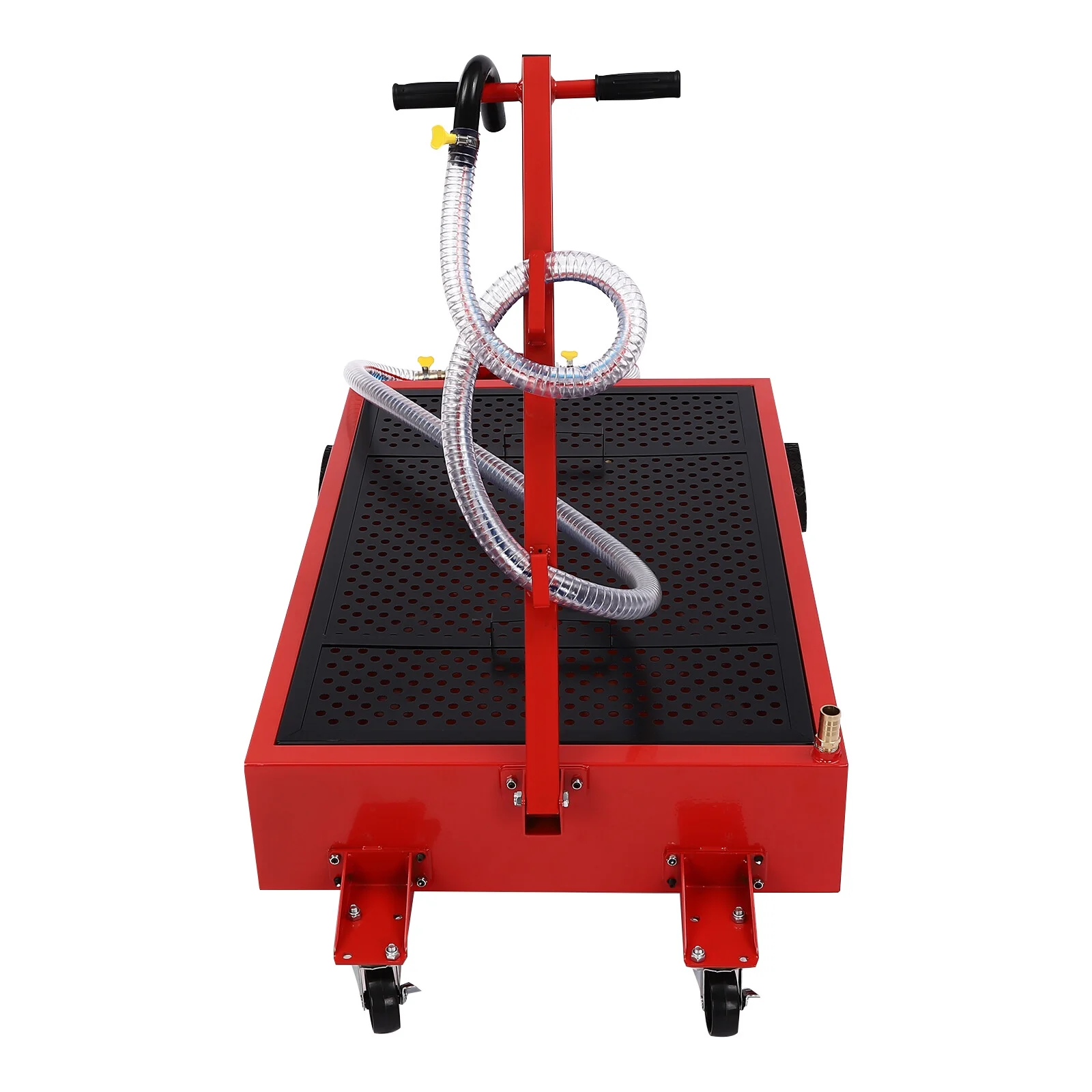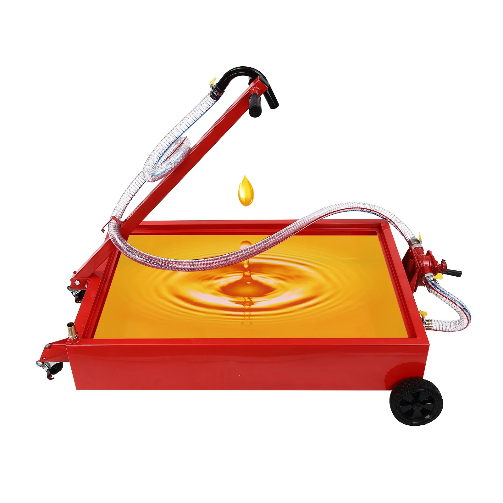 - Flexible to Move and Fix: Equipped with four wheels ( two 5'' rear wheels and two 2.5'' universal wheels with brakes) and an ergonomically designed T-handle, you can easily move and secure the oil drain pan anywhere, making it ideal for the oil catching underneath the car.