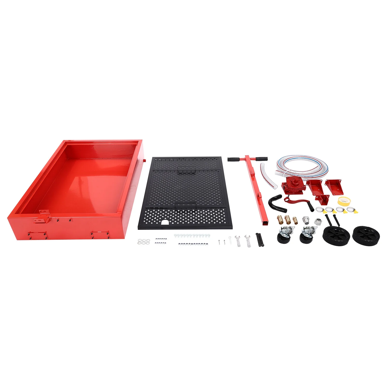 - Large Capacity: With a generous 20gal capacity tank, our oil drain pan enables the collection and disposal of substantial quantities of used fluids, including oil, coolant, and transmission fluids, and easy transportation to the disposal area, helping keep your shop clean
