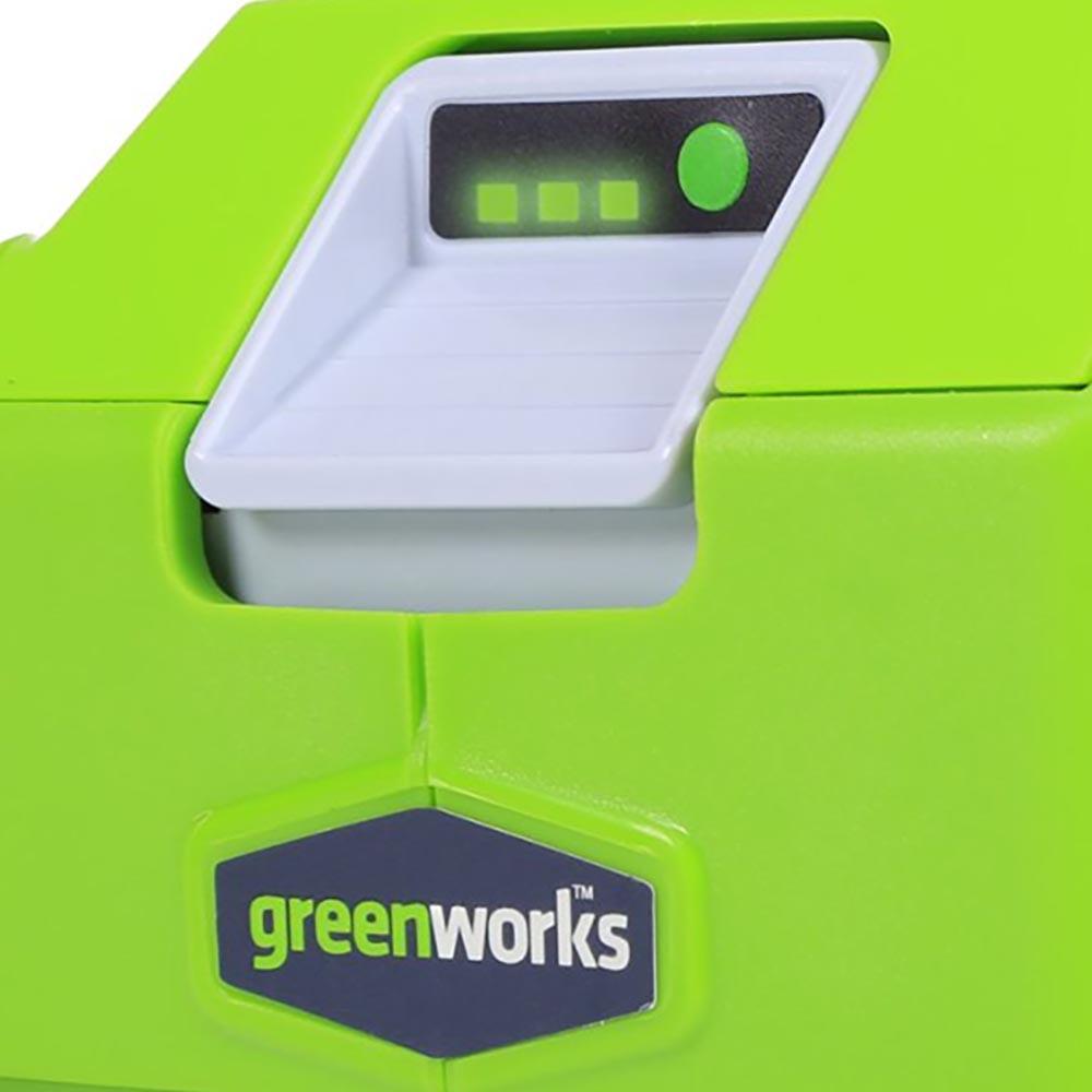 G-24 24V 4.0 Ah Lithium-Ion Battery. GreenWorks G-24V Lithium-Ion Battery compatible with both indoor and outdoor tools.. 4 Amps for longer run time. Quick charge time within 45 minutes.. 2 Amp battery also available. Compatible with charger model 29862.
