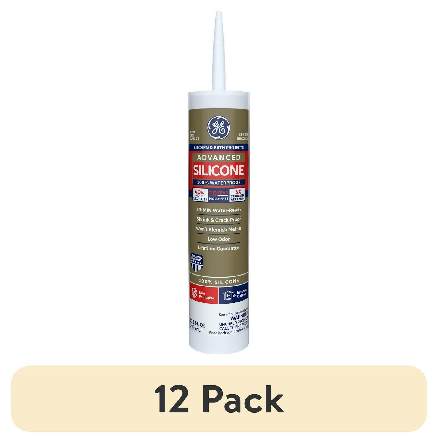 (12 pack) GE Advanced Silicone Kitchen and Bath Sealant. Pack of 1. Clear 10.1 fl oz Cartridge