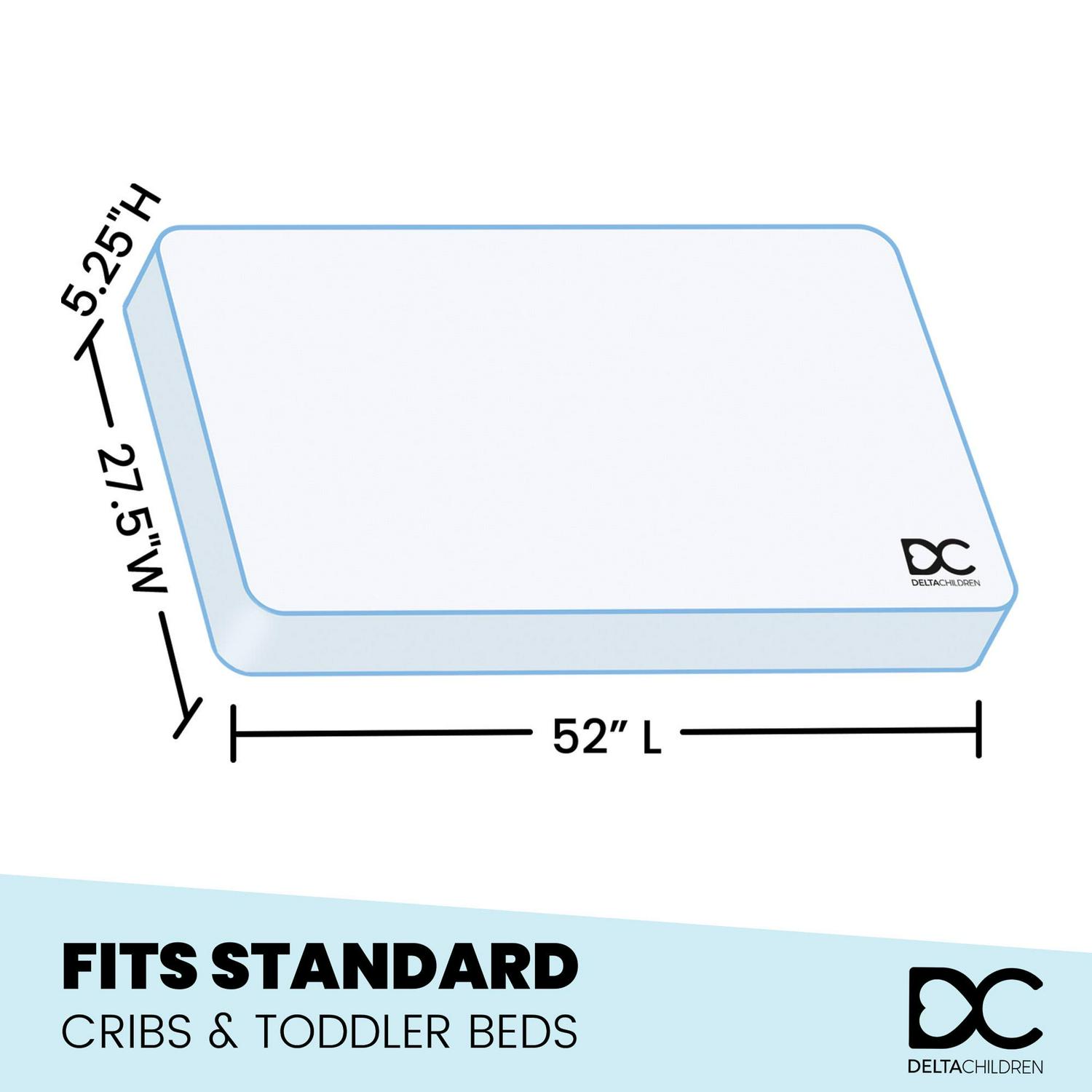 - SIZE: 52″L x 27.5″W x 5.5″ H | Fits standard cribs and toddler beds