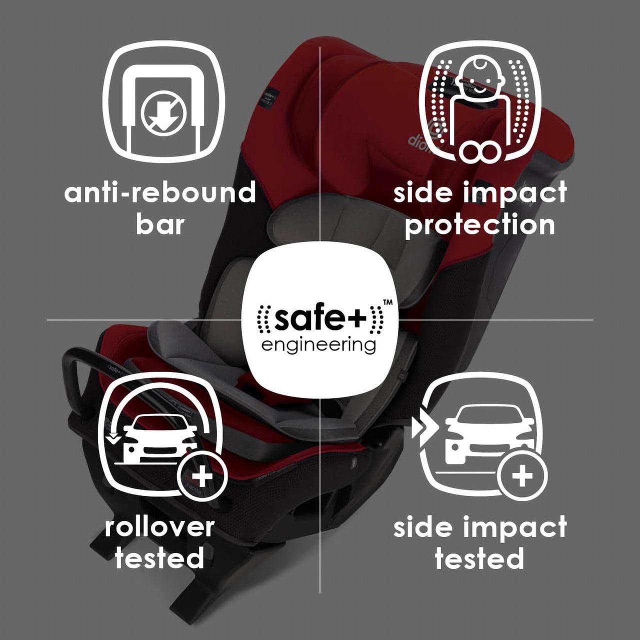 – Features 6 layers of Safe+ side impact protection without compromising 3 across installation in most midsize vehicles. with Diono’s famous slim-fit design