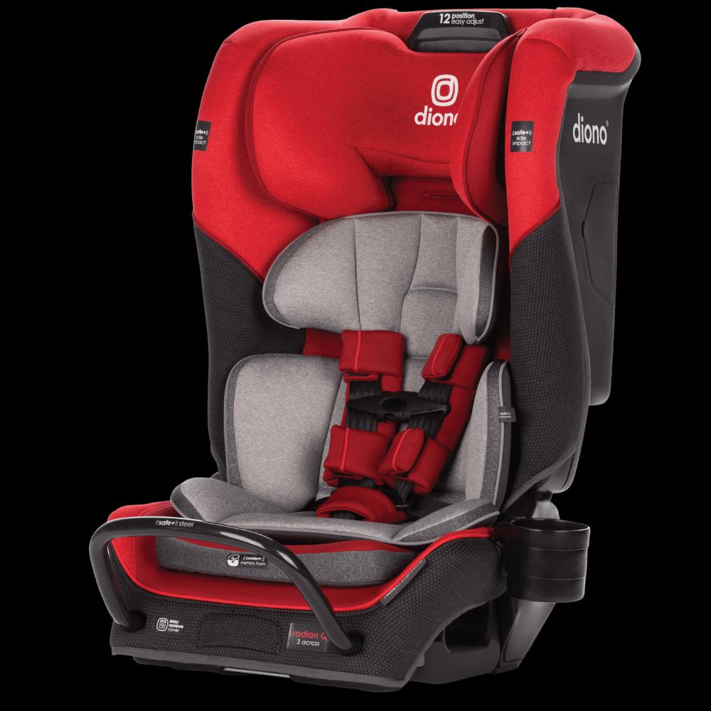 The next generation Diono Radian All-in-One Convertible transforms as your child grows from infant to booster for 10 years of us (4 – 120 lbs / 1.8 – 54 kg). Upgraded with 20 improvements from the much-loved Radian 3RXT. the Radian 3QX provides baby and infant protection. with a Safe+ Newborn baby travel high wedge and a 2-in-1 infant positioning liner for a custom fit from 4 lbs. As your child grows. the Safe+ steel rear-facing anti-rebound bar increased stability and reduces rebound rotation by up to 50%. so you can keep them rear-facing for longer! The Safe+ easy-adjust 12-position headrest offers a 22% increase in occupancy range from the Radian R series. The 3QX features 6 layers of Safe+ side impact protection without compromising the 3 across installation in most midsize vehicles for those with a busy backseat. All these great features have been combined with Safe+ engineering. with the Radian 3QX subjected to a combination of the most rigorous crash tests. including front. rear. and side impacts. and rollover tests to ensure the safest seat possible. In a range of bold colors. there is a Radian 3QX to suit every child. and for added parent convenience. the Radian 3QX cover is easily removable and machine washable.