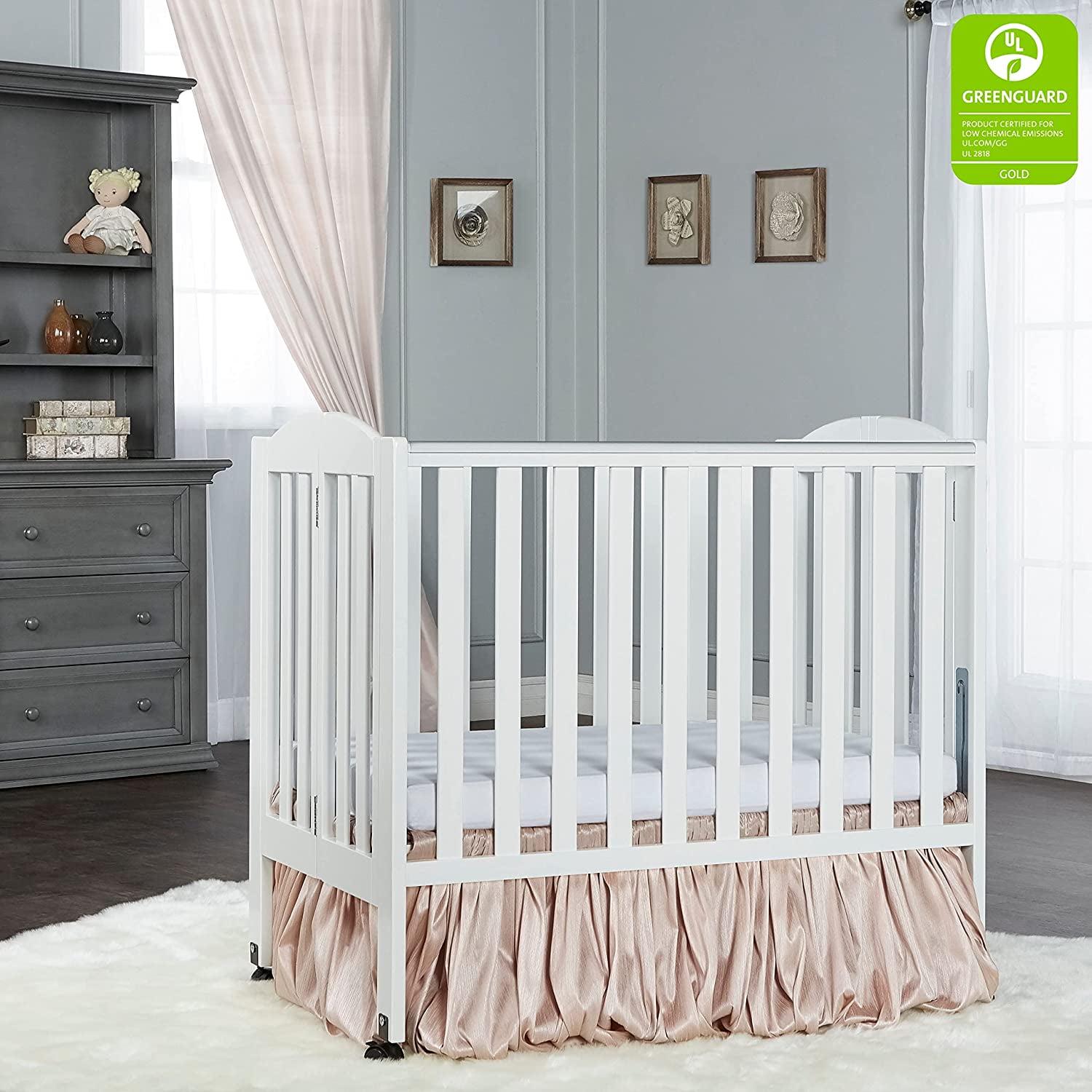 Dream On Me 2-In-1 Portable Folding Stationary Side Crib In White. Greenguard Gold Certified. Two Adjustable Mattress Height Positions.Made Of Solid Pinewood. Flat Folding Crib