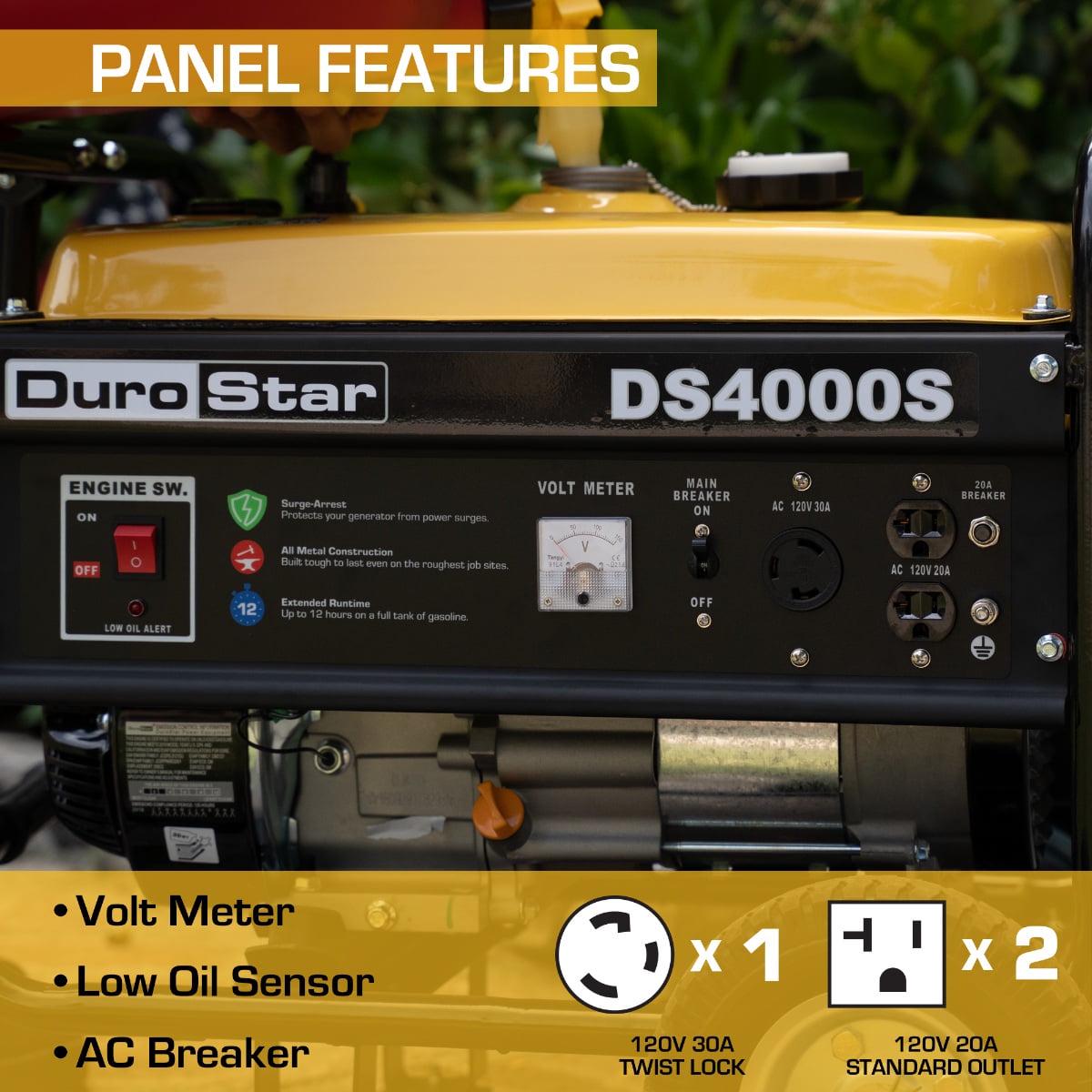 The DuroStar DS4000S 4.000 Watt Generator is designed for light duty emergency backup applications. This Generator has everything a Great Generator needs. but at a price that everybody wants.