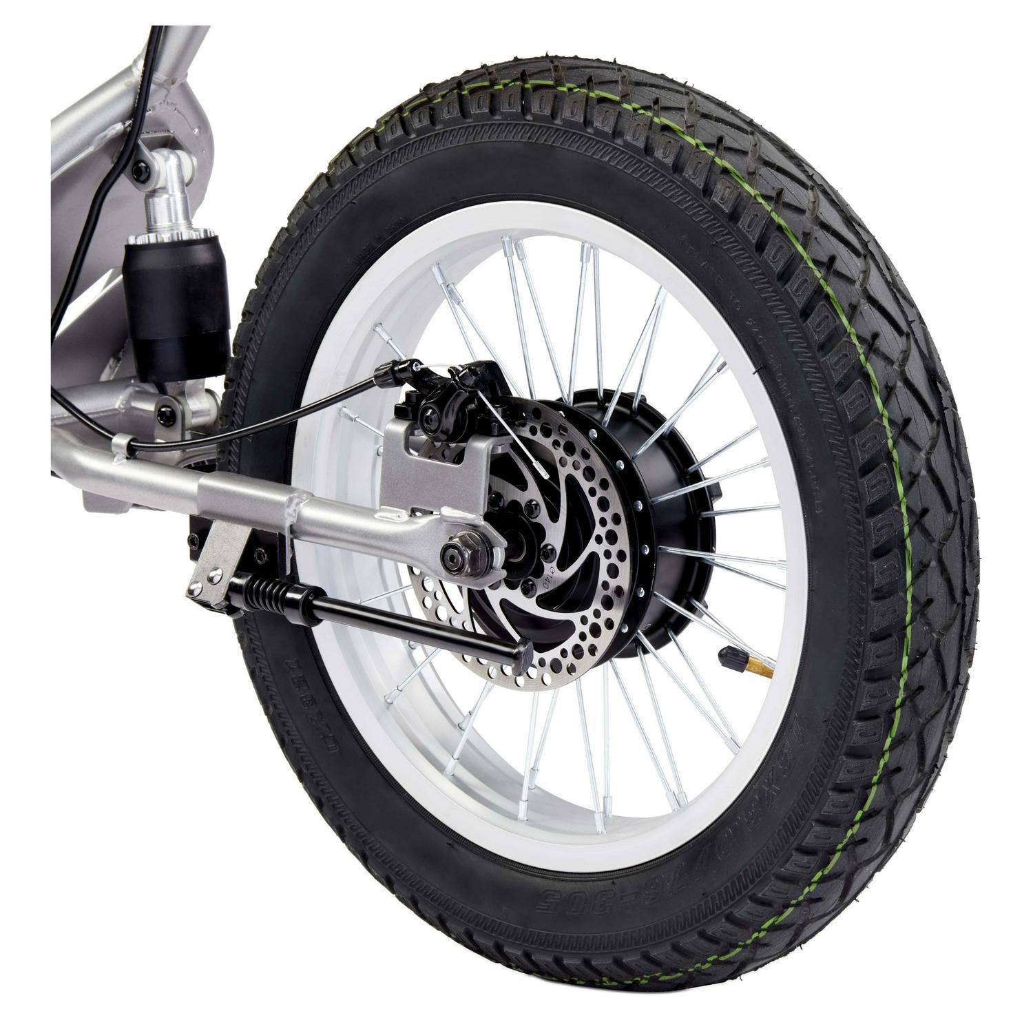 – TWIST and GO – Simple twist throttle powers up the ride on 25.2-volt motor. spinning up the 250-watt rear hub wheel