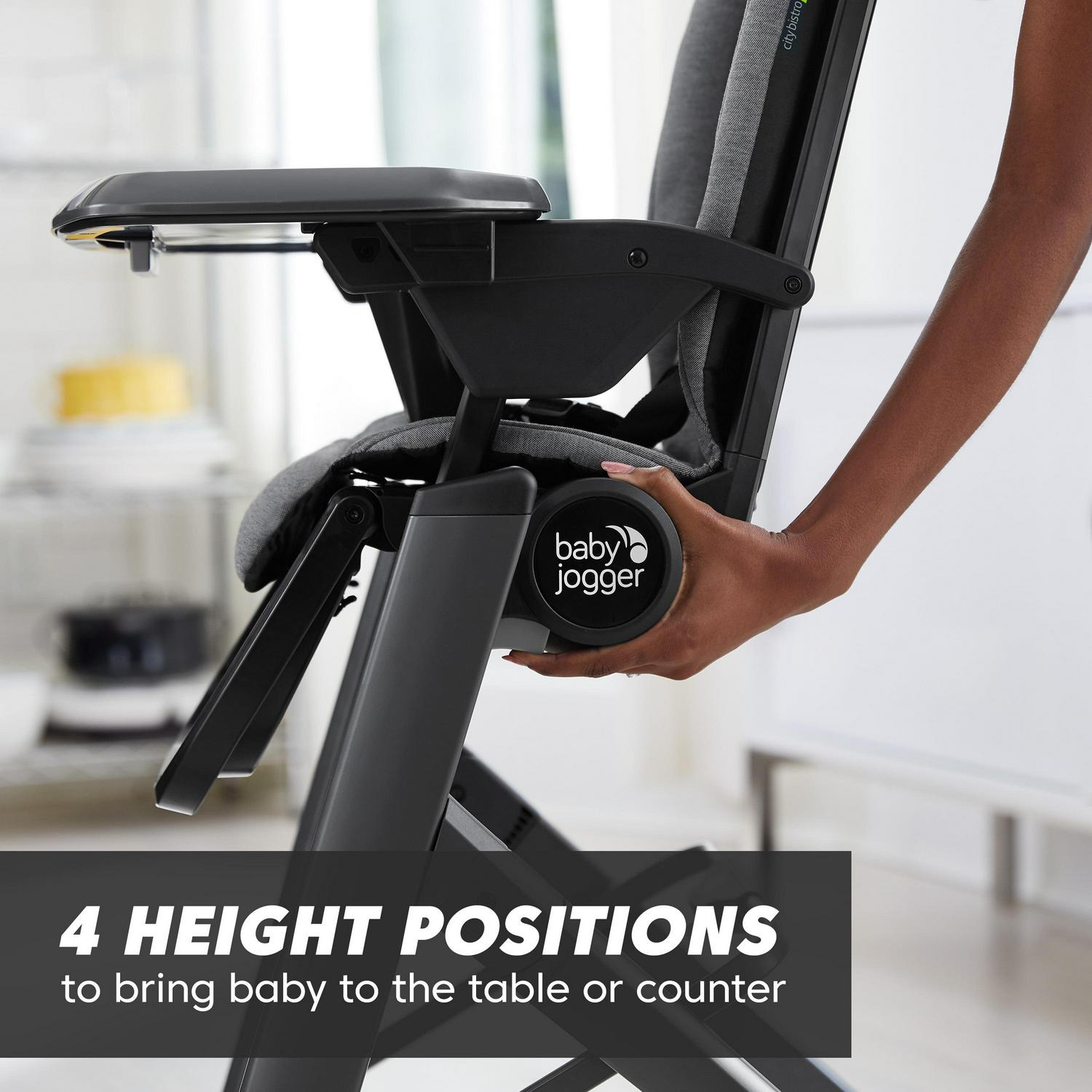 – 4 different height positions so baby can join in for family mealtime. whether at the table or counter