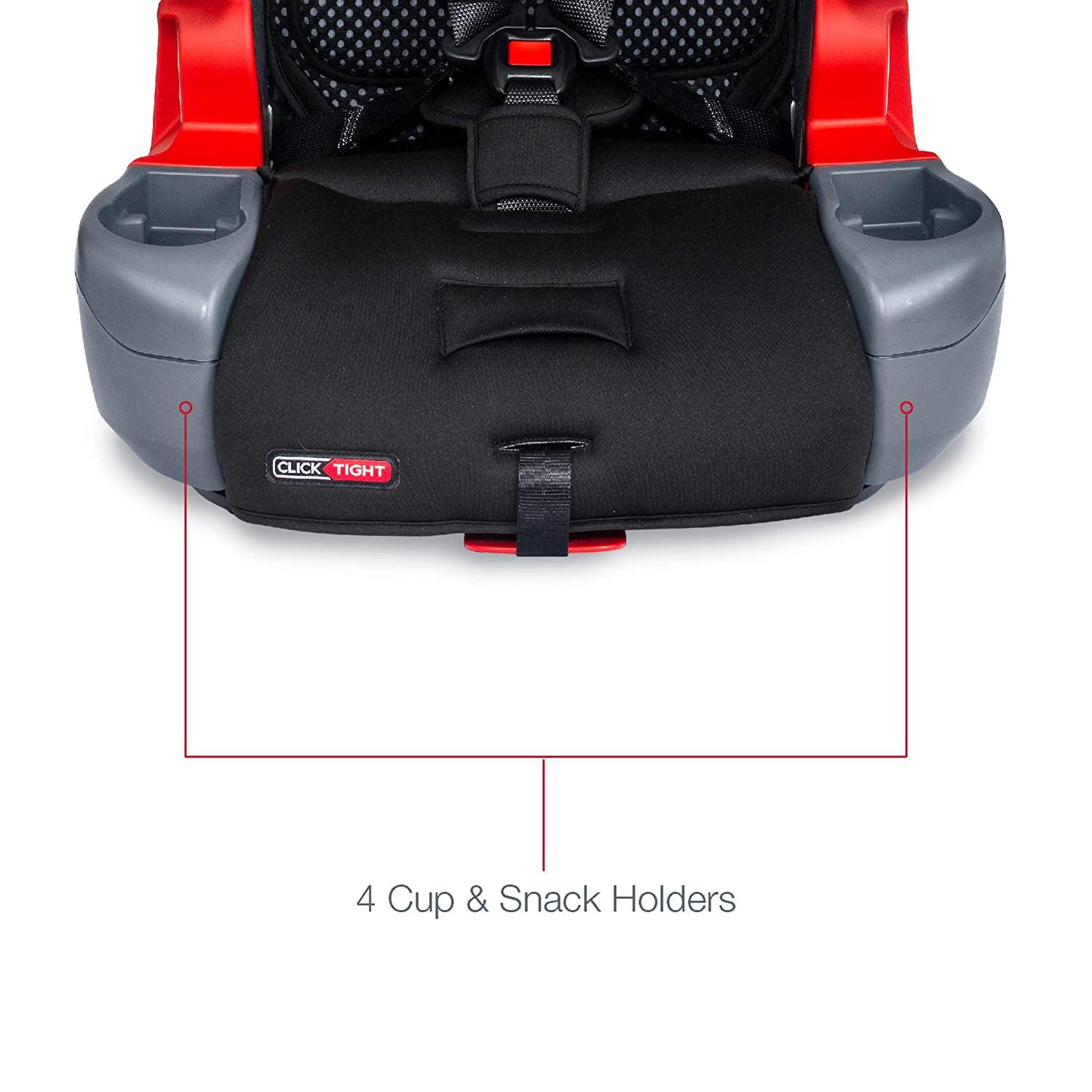 Grow with you ClickTight grows with your child from toddler to big kid. The cool flow mesh fabric improves airflow to keep them cool and comfortable. In addition. the seat and headrest are padded for nap-friendly rides. Install confidently. every time. With ClickTight. you know it s right in 3 easy steps. Open the seat. thread & buckle the seatbelt. and click it closed. 2 layers of side impact protection include an energy-absorbing shell and foam-lined headrest that surround the head. neck & torso. Safe cell impact protection in the base creates a crumple zone that absorbs crash energy to help keep it away from your child. Quickly adjust the 9-position harness & headrest using just one hand for the proper fit as your child grows. Once your child is ready to use the seat belt. the 5-point harness tucks away. transitioning to a belt-positioning booster. With easy-to-clean armrests. cup holders. and snack storage. even big kids enjoy the ride.
