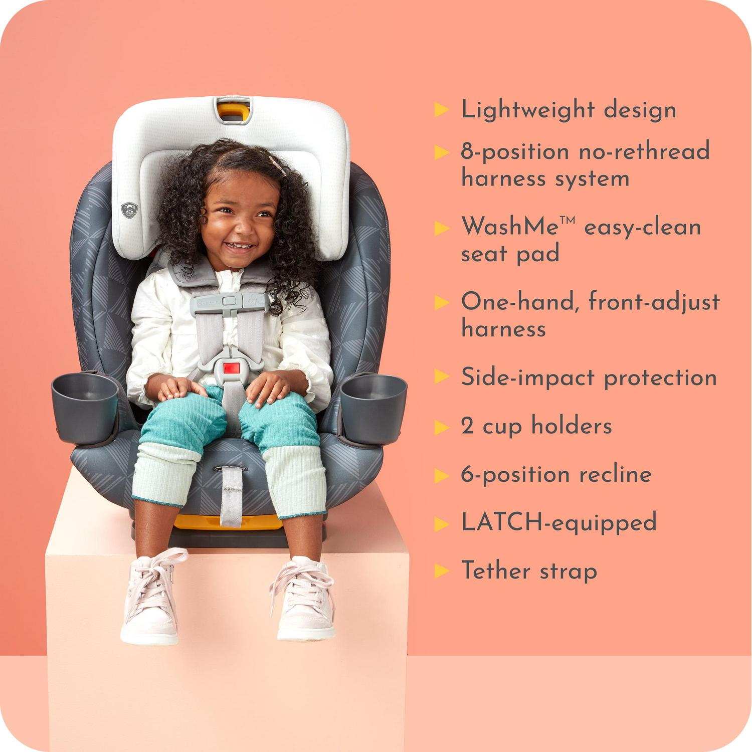 – NO STRAP STRUGGLE: No-rethread harness system; one-hand. 6-position headrest and harness adjust together
