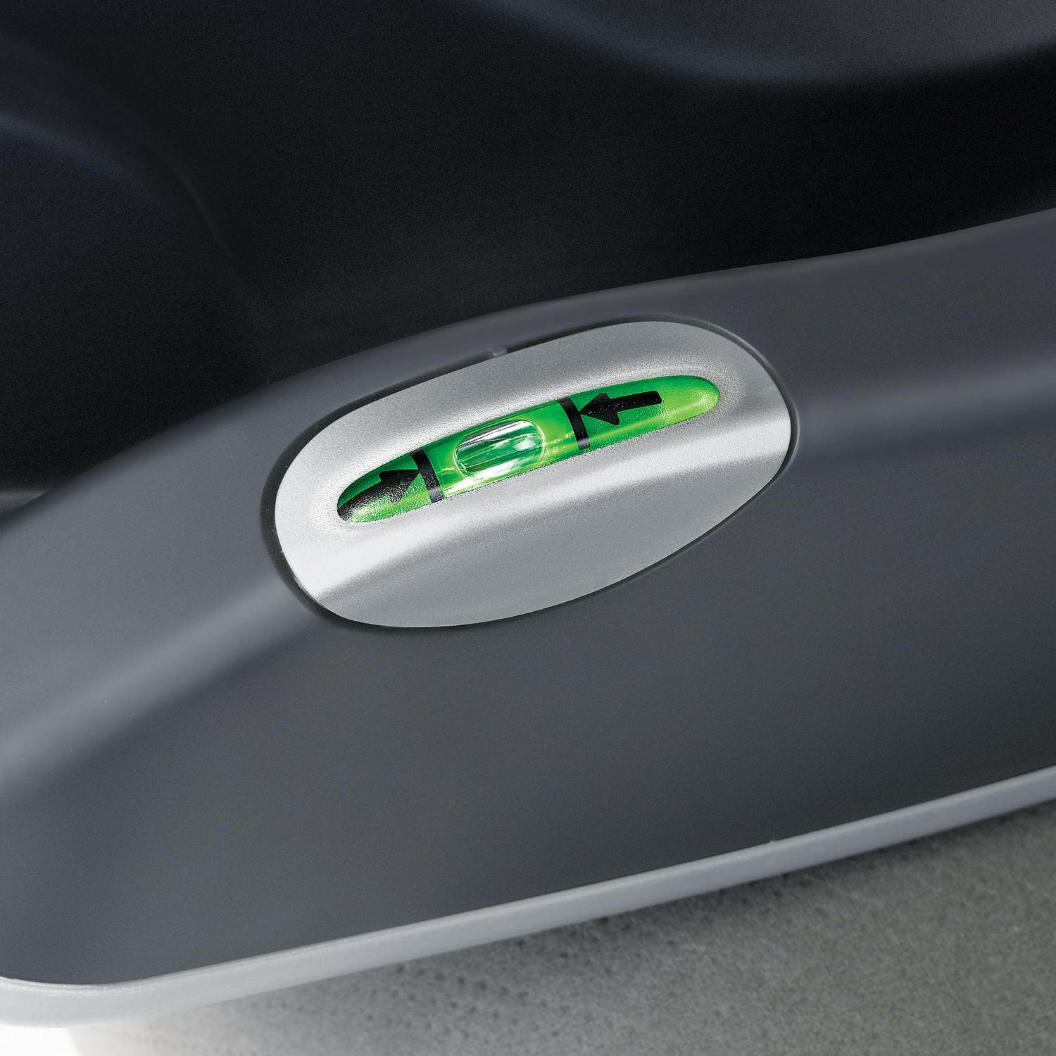 Two RideRight bubble level-indicators and the ReclineSure spring-loaded leveling foot help verify and achieve proper angle in the vehicle seat. The base is also equipped with premium LATCH connectors for easy attachment and removal from the lower anchors in the vehicle seat. The one-pull SuperCinch tightener applies force-multiplying technology for a secure fit with a fraction of the effort.