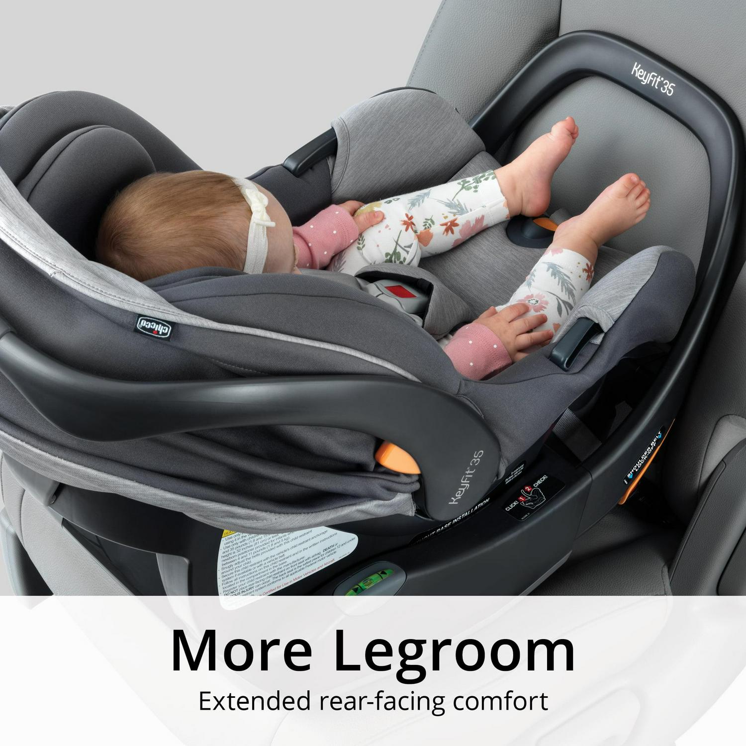 The KeyFit 35 ClearTex Extended-Use Infant Car Seat offers more headrest height and legroom for extended rear-facing use. From textiles to tags. ClearTex features no added chemicals for child comfort and parent peace of mind. GREENGUARD Gold Certified. the KeyFit 35 ClearTex has been tested for low chemical emissions. contributing to healthier air quality around baby.