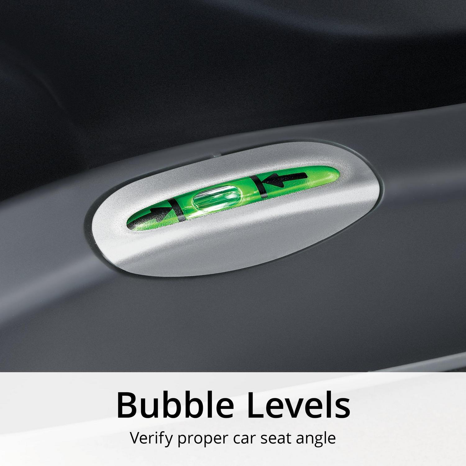 – One-hand ReclineSure spring-loaded leveling foot works in tandem with RideRight bubble levels to hep verify and achieve proper car seat angle