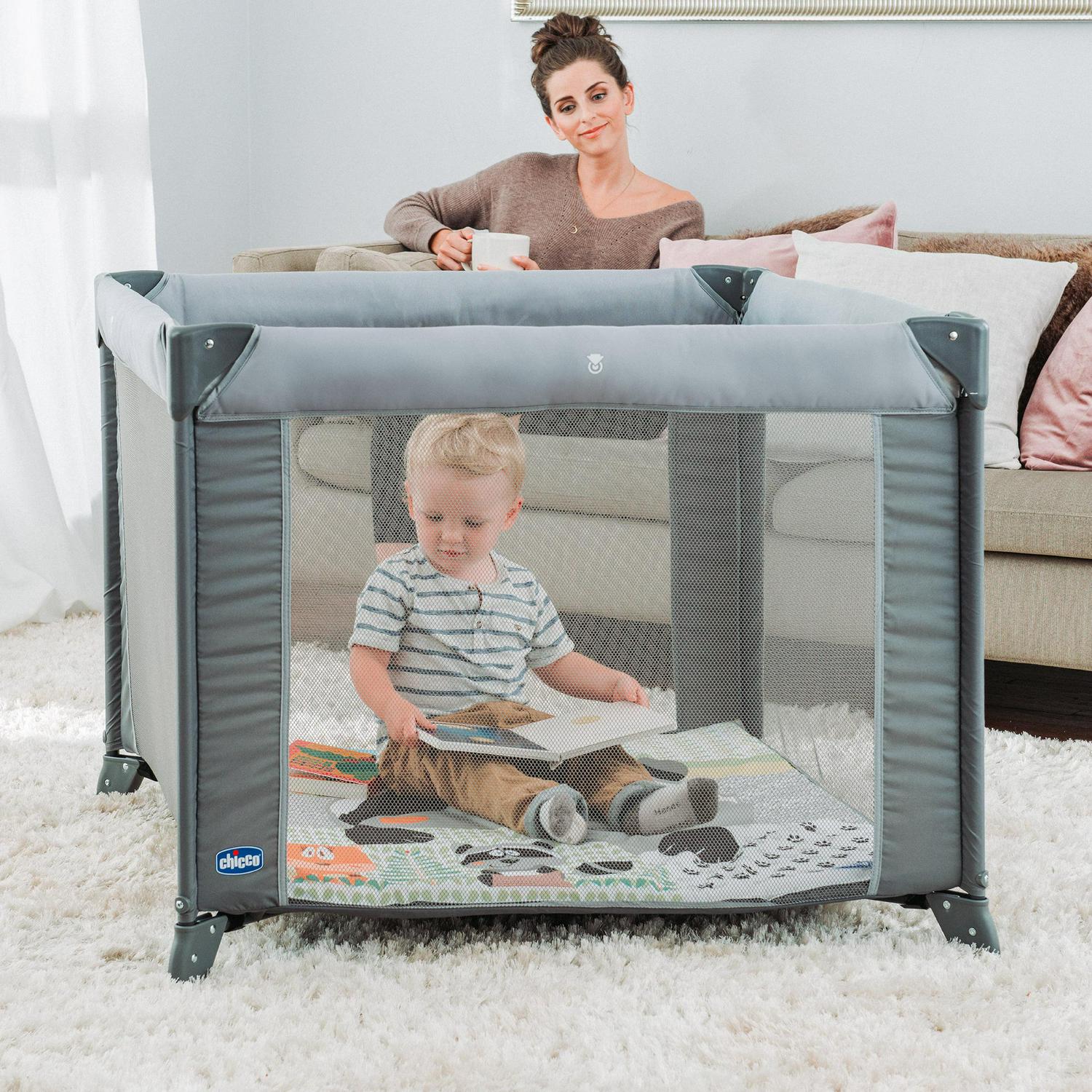 Move over rectangle. the Chicco Tot Quad Portable Square Playpen offers a 37 x 37 footprint with a spacious 34″ x 34″ padded area for comfortable sleep or play and parent peace of mind. Conveniently portable. Tot Quad features a lightweight design with a compact. push-button fold and carry bag.