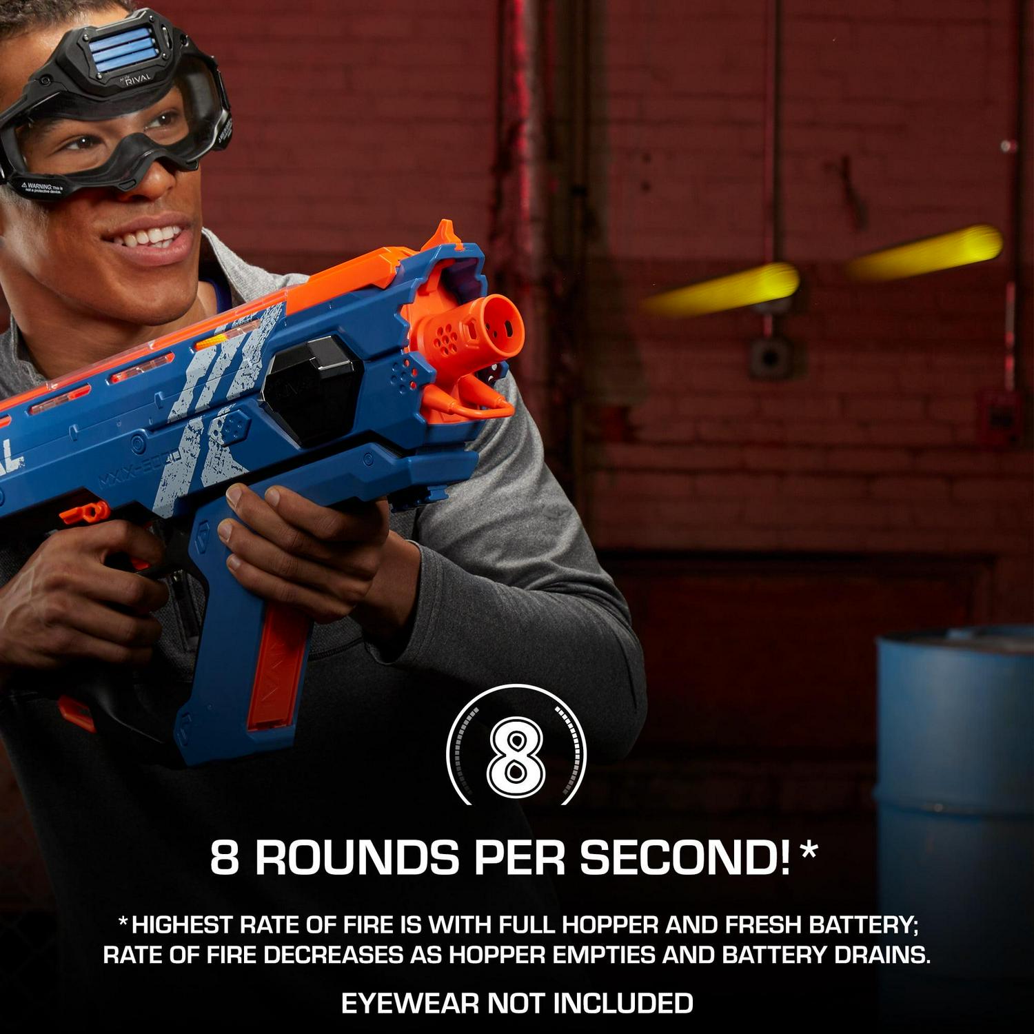 – FASTEST BLASTING NERF RIVAL SYSTEM: Blaster features the fastest blasting Nerf Rival system. firing up to 8 rounds per second* at a velocity of up 100 feet per second (30 meters per second)