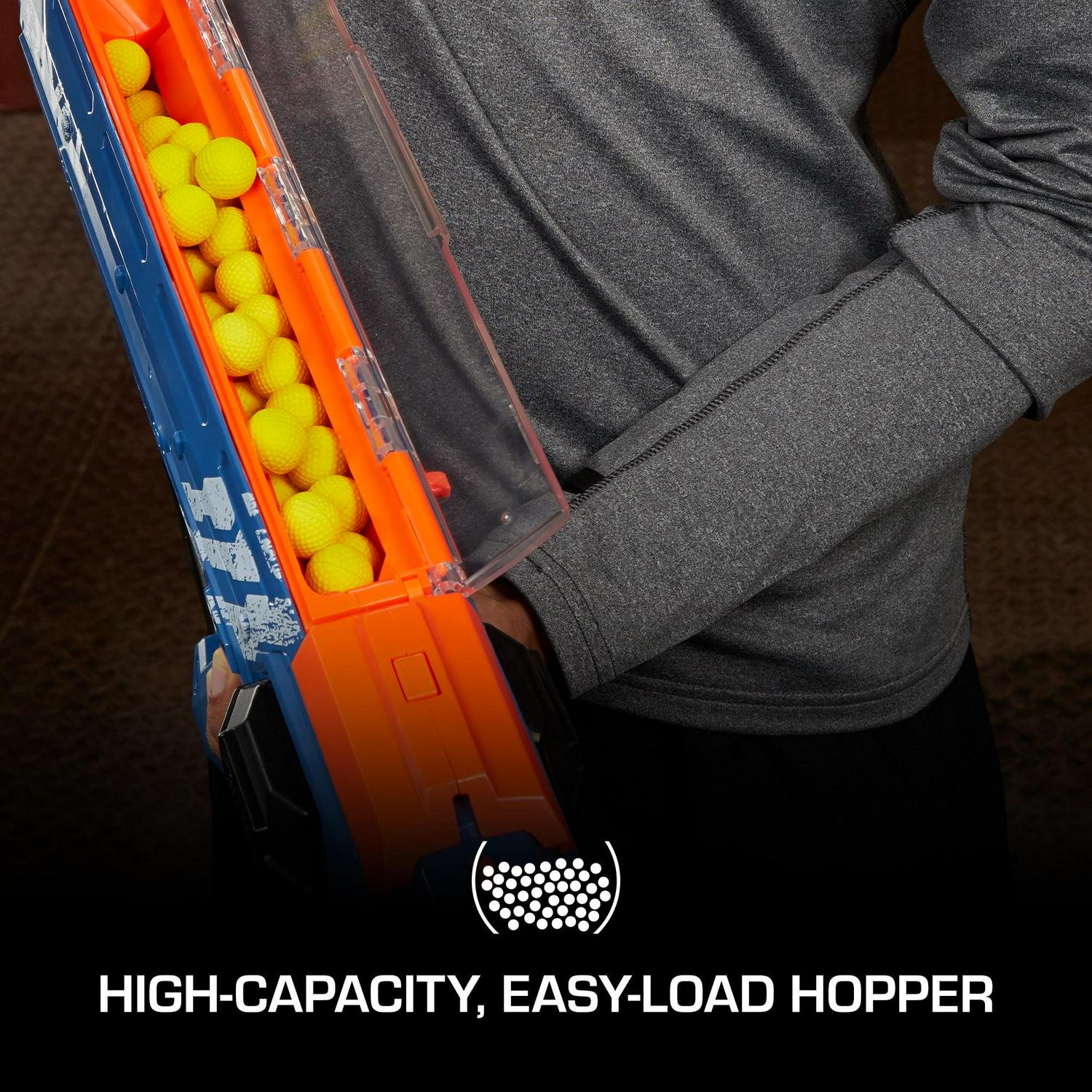 – RECHARGEABLE BATTERY AND QUICK-LOAD HOPPER: Includes a rechargeable NiMH battery and a wall charger and has a quick-load hopper with 50-round capacity