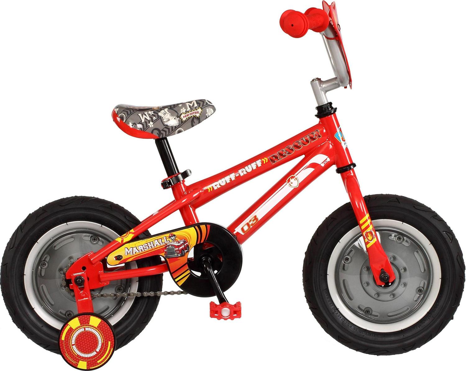 If danger is near. just give a yelp! The PAW Patrol is here to help! Countless puppy pal driveway adventures await on the 12″ Boys’s PAW Patrol: Marshall sidewalk bike! This adorable sidewalk bike is the perfect way to introduce your child to a lifetime of healthy bike riding. The included training wheels add stability that helps little ones learn to ride. and they’re easily removable once they’re ready to ride like a big kid. A rear coaster brake ensures easy. intuitive stopping. while the tool-free adjustable seat post means you won’t need a new ride after the next growth spurt. Little fans of the show will love having Marshall the fire-pup along for the ride! The adorable low stand-over frame is full of puppy-inspired graphics. while the laser-printed seat. and groovy chain guard add tons of head-turning style. There’s even a handlebar bag for bringing toys along for the ride! Get your little one a ride they’ll remember with the PAW Patrol: Marshall sidewalk bike!