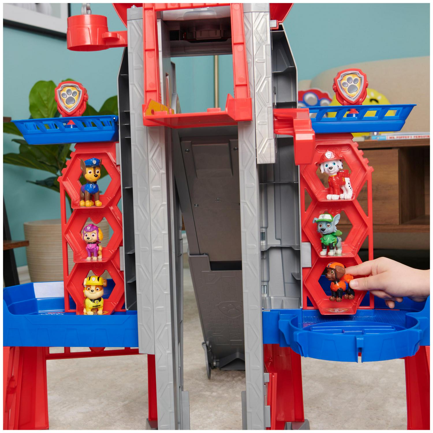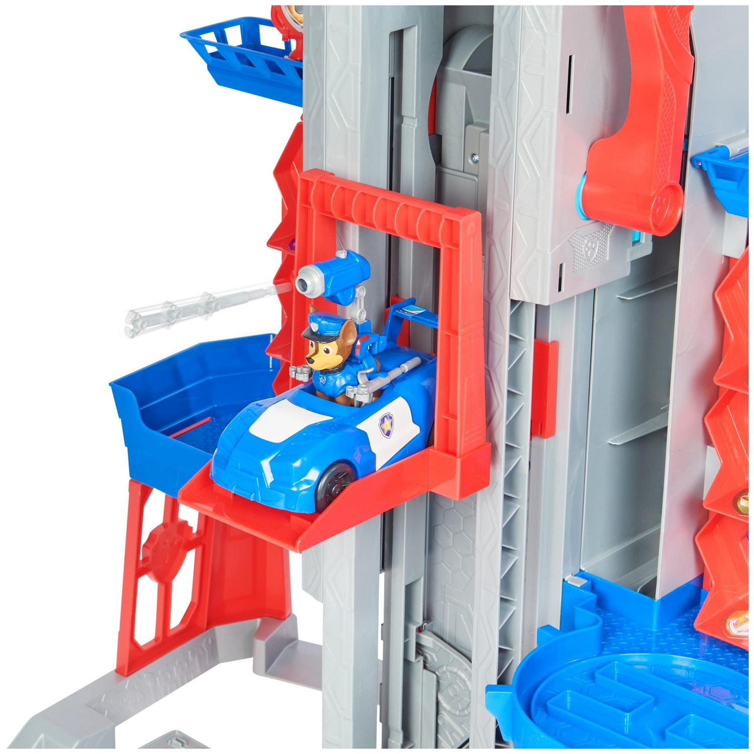 Introducing the all-new PAW Patrol: The Movie Ultimate City Tower! This 3-foot-tall playset the tallest PAW Patrol tower yet brings the pups Adventure City headquarters from the big screen to life. It s jam-packed with amazing features to discover. including a transforming light-up rescue ramp. command center. vehicle lift. pup elevator. lights and sounds and so much more! With Chase s cruiser. a clip-on backpack. and all six PAW Patrol figures included. you can get straight to the fun right out of the box. Load Chase into his vehicle and get a quick tune-up before missions in the tower s garages. then clip Chase onto the pup elevator and send him up to the command center! Press the button to hear sound effects and activate the tower s lights! Rotate the holographic city map for more lights and use the pup selector to choose a pup for the mission. Chase is on the case! Place your figure down the slide to the gear-up area and clip-on Chase s backpack. Pull the vehicle lift up to the top of the tower and get ready to race to the rescue! Pull the handle all the way down to transform the Ultimate City Tower. The front panel opens up and the rescue ramp extends! Place your vehicle at the top and launch into action strips on the ramp light up as the vehicle rolls over it. just like in the movie! With the Ultimate City Tower. rescues have never been more exciting! Press the button on the backpack to launch projectiles (three included) and save the day! As you use your imagination to create your rescue adventures with this kids toy. there s room throughout the tower to play with all of the pup figures. For even more ways to play. the Ultimate City Tower works with the movie Deluxe Vehicles (each sold separately). PAW Patrol The Movie toys for boys and girls are the ultimate gifts for kids aged 3 and up. Requires adult assembly and 5 AAA batteries (not included). Experience the action and excitement of PAW Patrol: The Movie with the Ultimate City Tower!